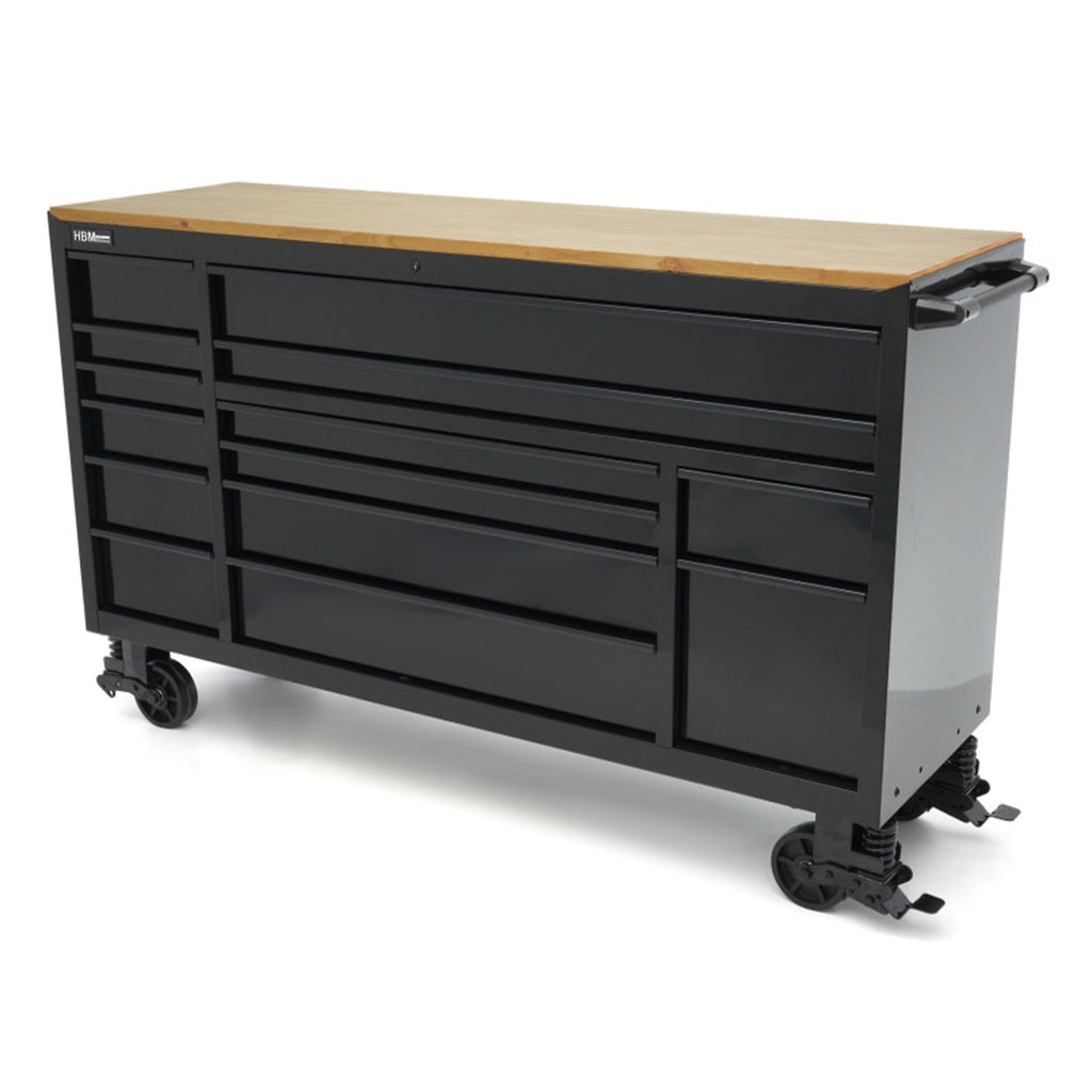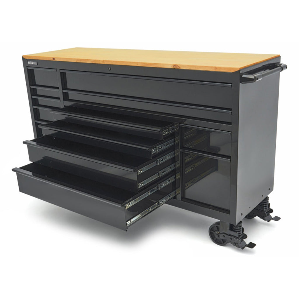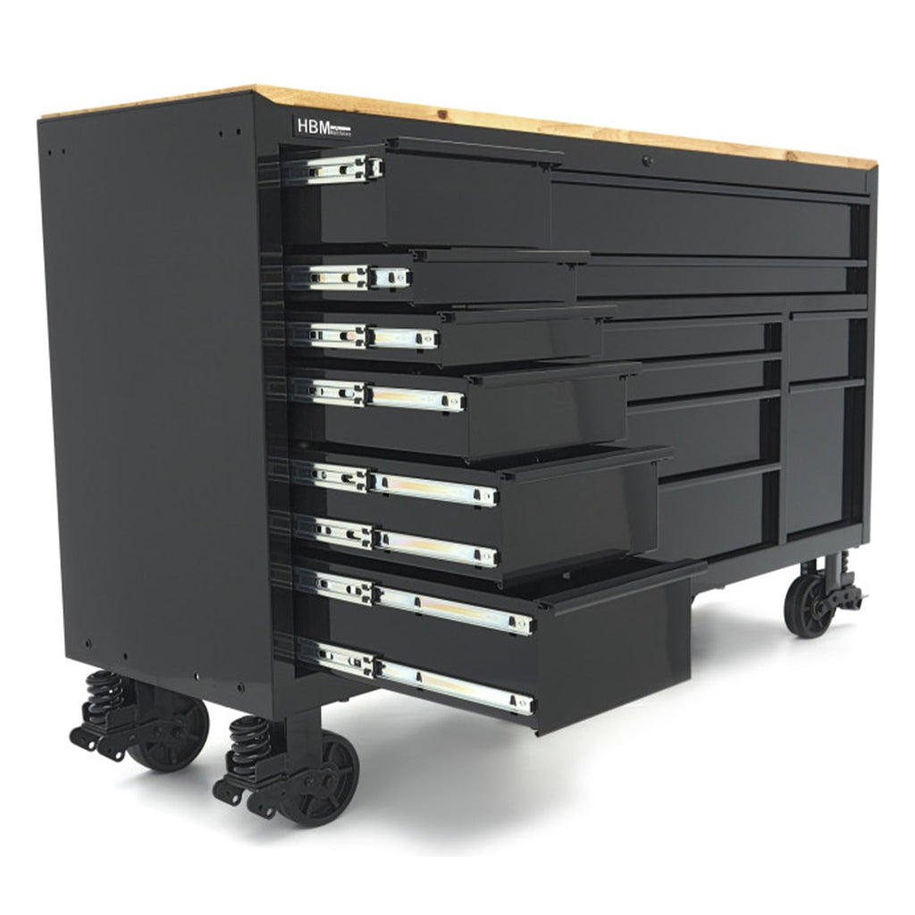 Mobilný pracovný stôl s drevenou doskou, s náraďovou skrinkou, 14 zásuviek, profesionálny, 182cm HBM