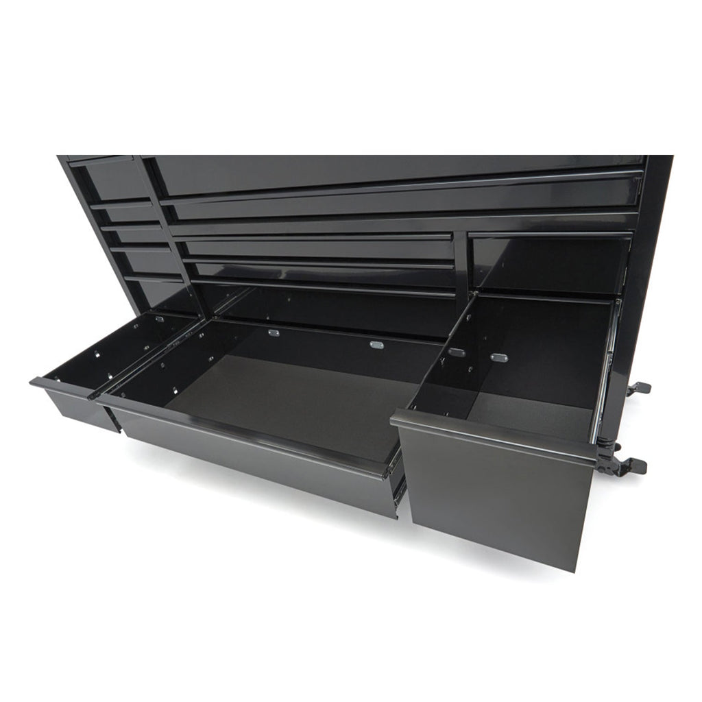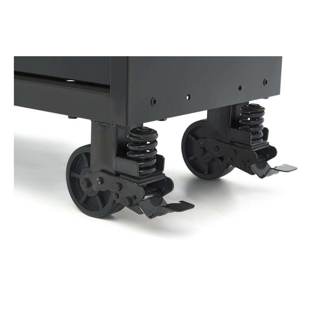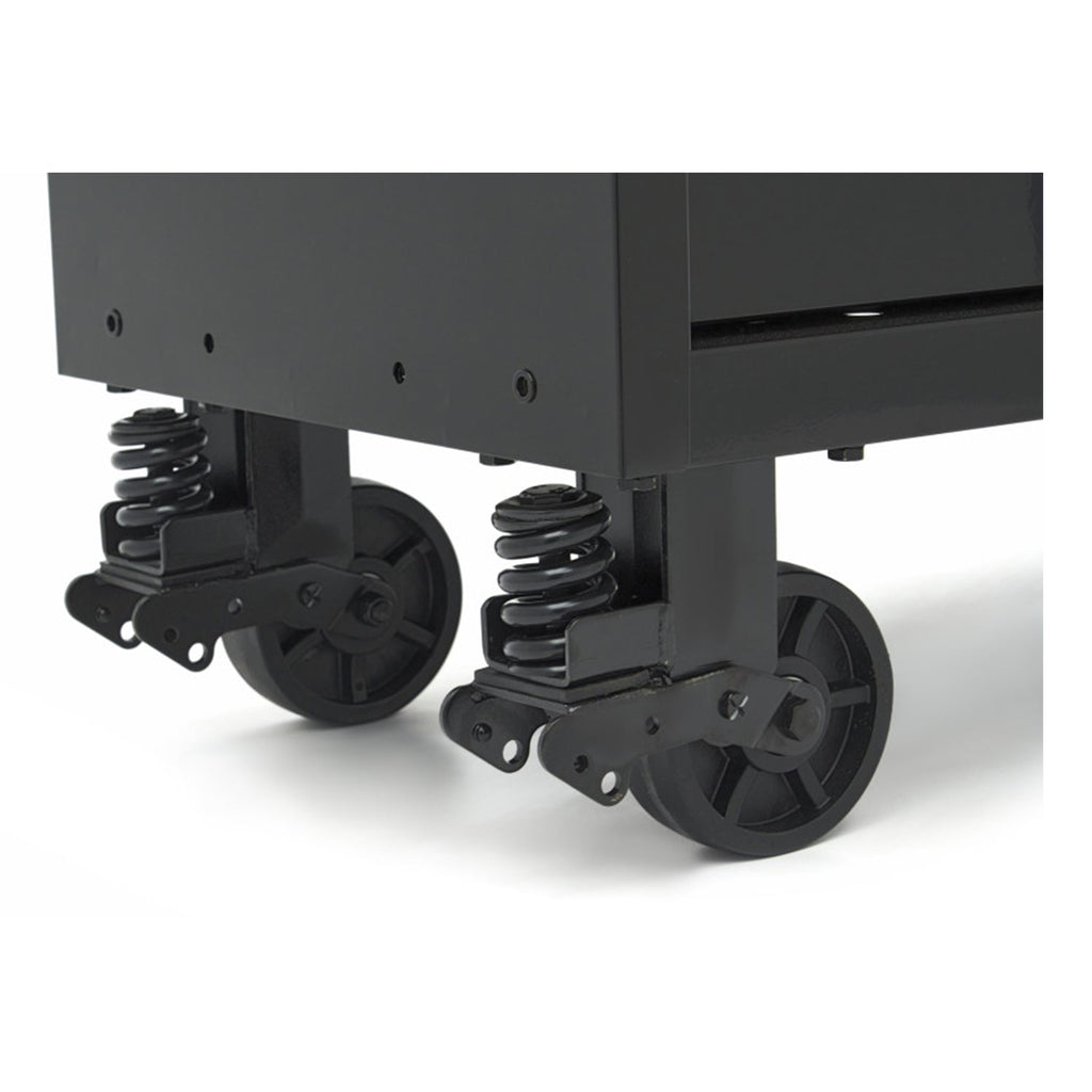 Stôl obsahuje: dve 125 mm kolesá s brzdami, dve 125 mm pevné kolesá, pevné oceľové madlo, centrálne uzamykanie pre všetky zásuvky, 2 kľúče, masívnu drevenú dosku, vodiace lišty s ložiskami.