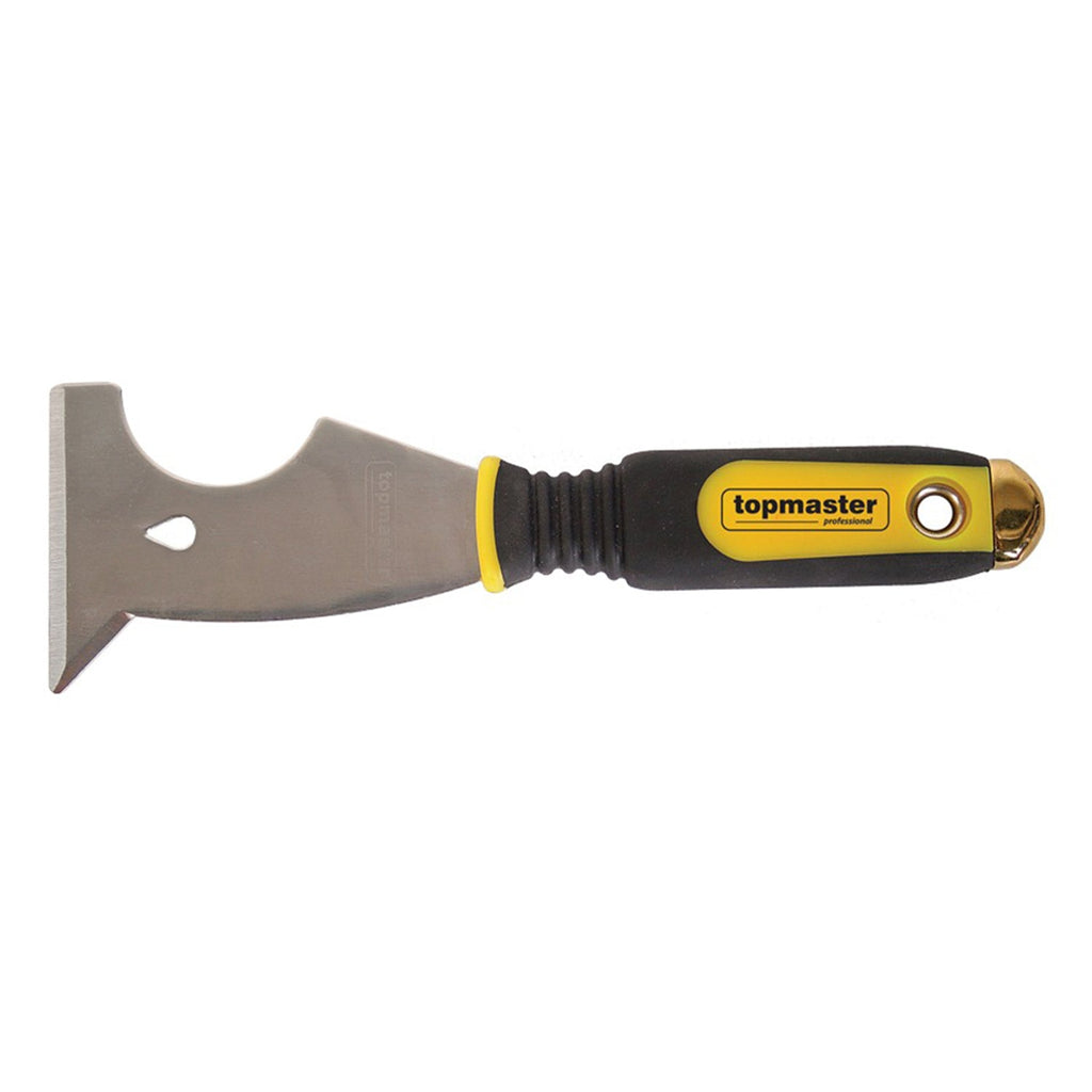 TÁTO MULTIFUNKČNÁ ŠKRABKA 5 V 1 TOPMASTER je vyrobená z nehrdzavejúcej ocele a rukoväť je potiahnutá gumou pre lepšiu priľnavosť.