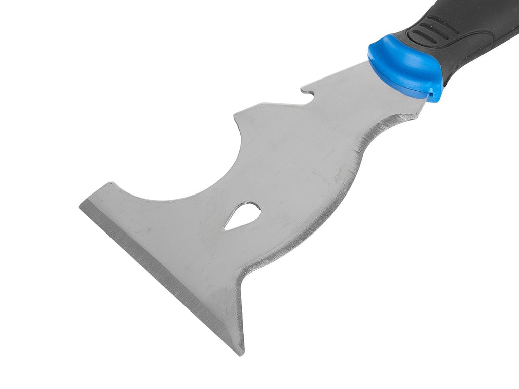 MULTIFUNKČNÁ ŠKRABKA NA ODSTRAŇOVANIE FARBY má čepeľ vyrobenú z chróm-vanádiovej ocele (CrV) 3Cr13 s tvrdosťou 44-49 HRC. Tvarovaná hlava umožňuje zoškrabovanie v ťažko dostupných miestach. Ergonomická dvojzložková rukoväť poskytuje bezpečné a pohodlné uchopenie, čo výrazne uľahčuje prácu.