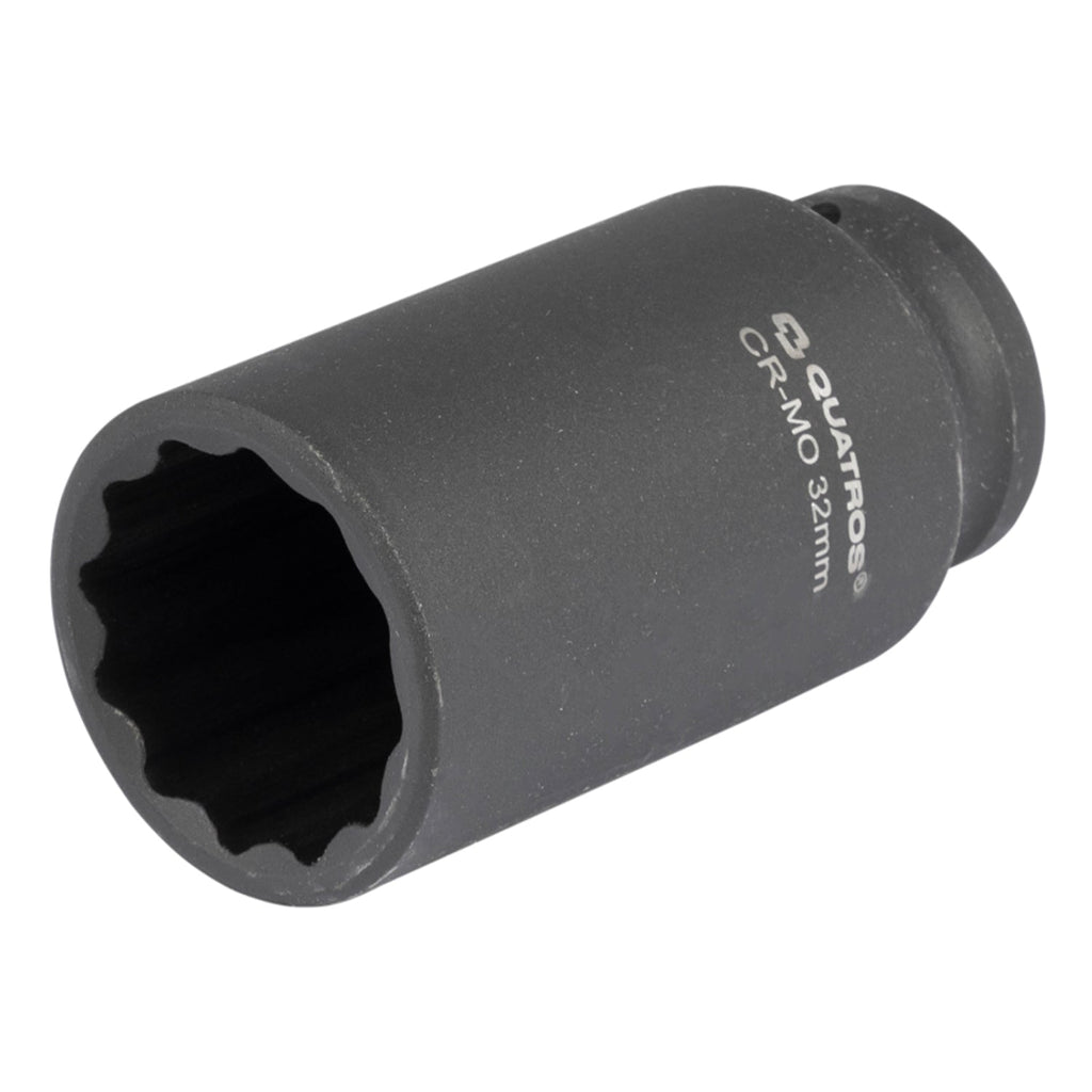DLHÁ NÁRAZOVÁ HLAVICA 1/2'' 12 HRÁN 32MM je vyrobená z chróm-molybdénu a má dĺžku 80 mm. Má veľkosť 32 mm s 12 hranami a spojenie 1/2”.
