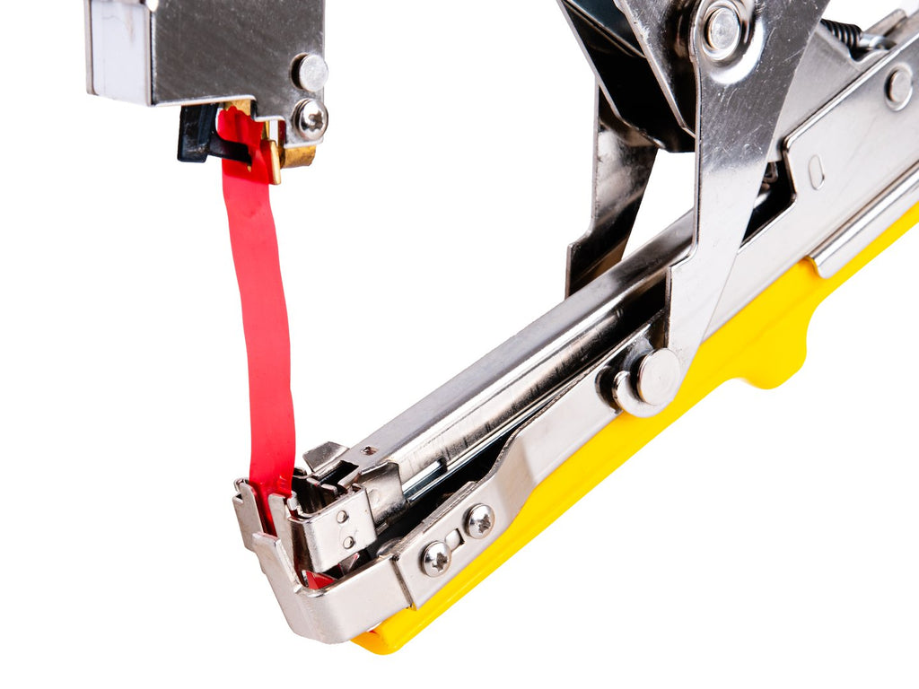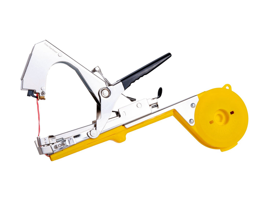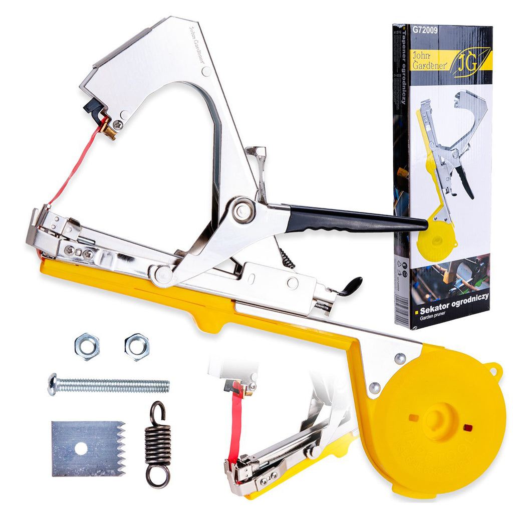 Tento NÁSTROJ NA VIAZANIE VINIČA, 32 x 20 CM JOHN GARDENER je určený na rýchle a rovnomerné viazanie rastlín v záhradách, škôlkach a skleníkoch. Prístroj je vyrobený z kovu a odolného plastu, má pevnú konštrukciu a ľahko sa ovláda. Používa spony s rozmermi 6 × 4 mm a pásku s priemerom 10 mm, vhodnú na stabilné upevnenie stoniek bez ich poškodenia. Ergonomický dizajn umožňuje pohodlné a presné používanie. Sada obsahuje viazač, jednu pásku, spony, náhradnú skrutku, matice, pružinu a čepeľ.