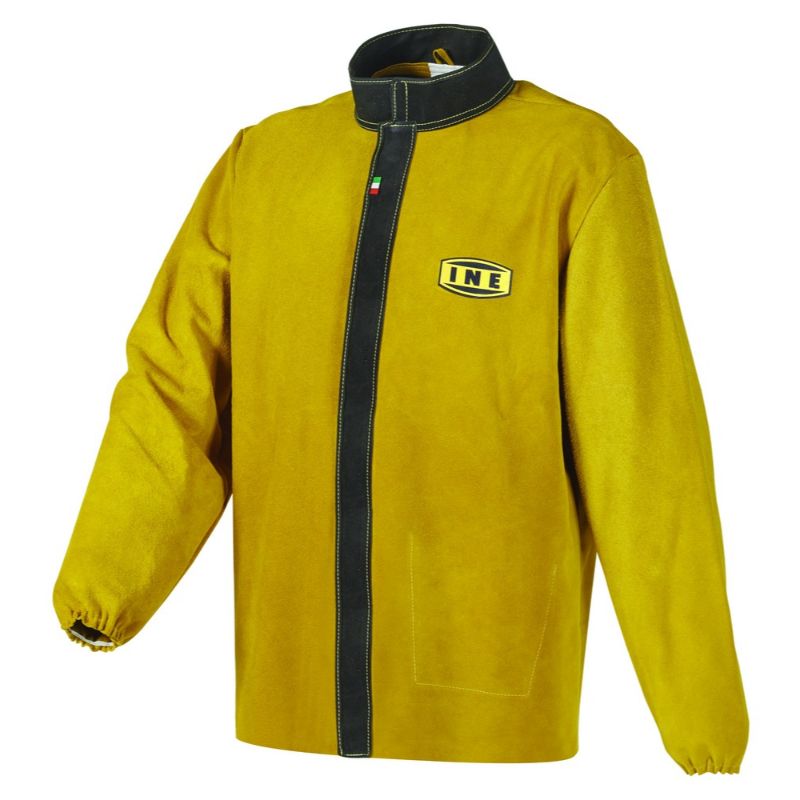 SVÁŘECÍ BUNDA Z HOVĚZÍ KŮŽE L má dvojité zapínání na suchý zip typu Velcro a knoflíky pro maximální ochranu.