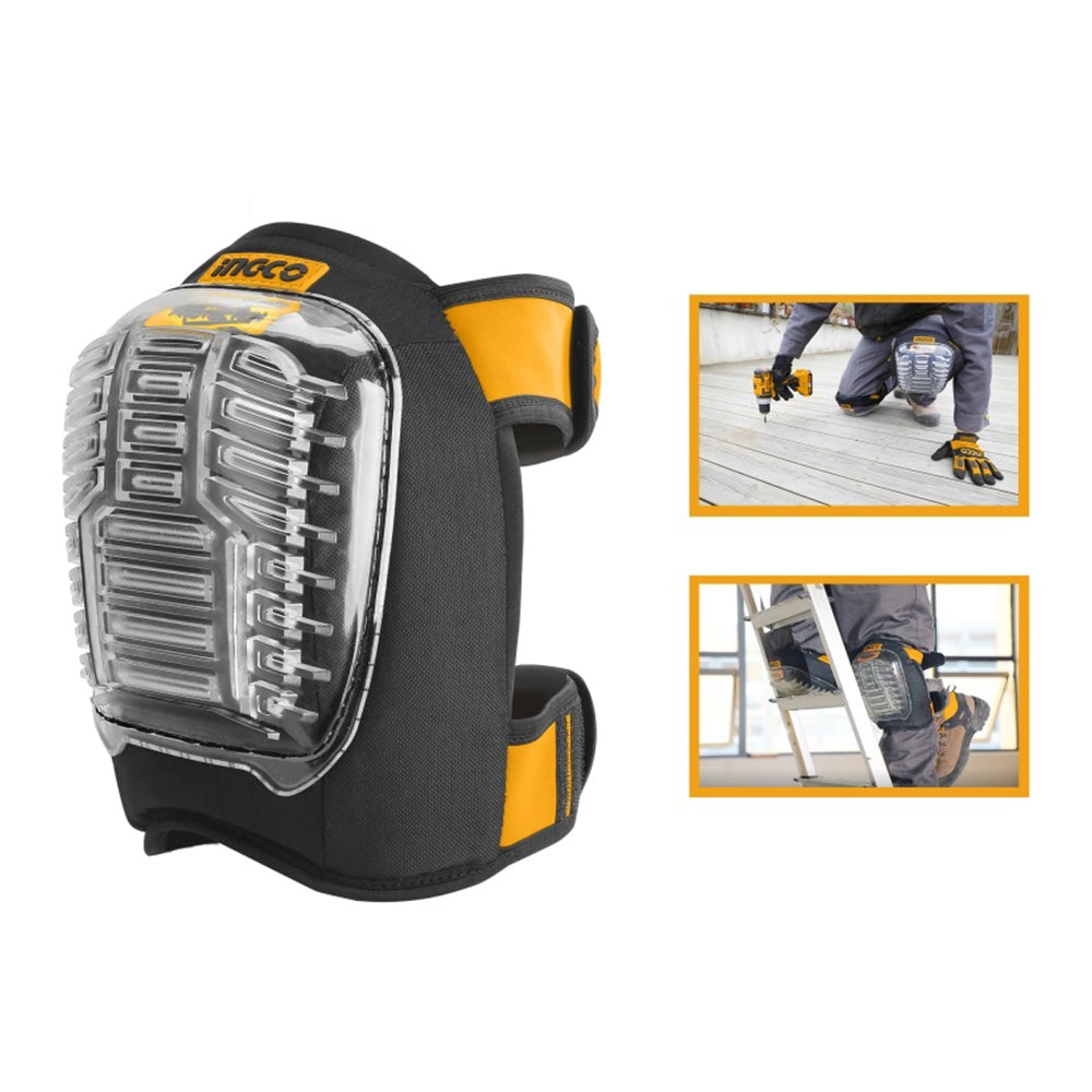Tieto CHRÁNIČE KOLIEN 215X180MM INGCO slúžia na ochranu kolien počas pracovného procesu a zabezpečujú maximálnu odolnosť proti nárazu. Vankúše sú z peny, ktorá poskytuje pohodlie a znižuje náraz na kolená. Produkt má elastické popruhy a pracky, pomocou ktorých sa dajú podľa potreby upevniť.