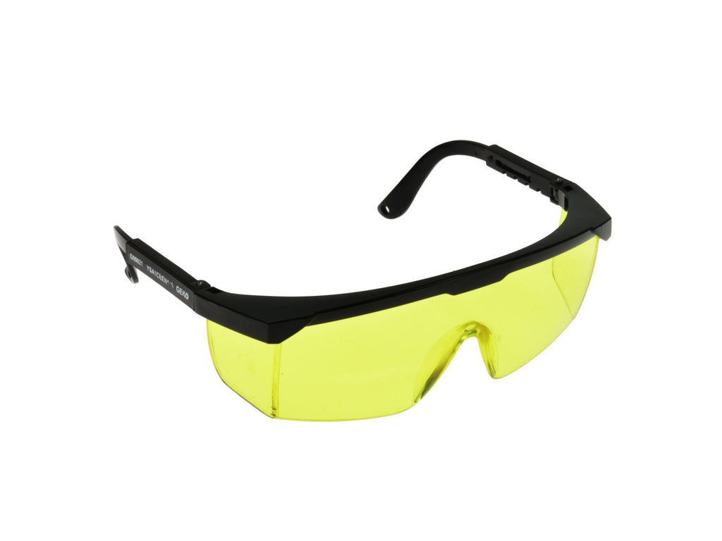 Tieto ŽLTÉ OCHRANNÉ OKULIARE sú navrhnuté na ochranu očí pred rozstrekovaním pevných častíc, ktoré vznikajú počas spracovania dreva, kovov, keramiky a plastov.