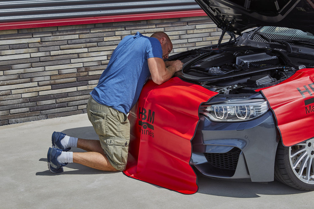 TENTO OCHRANNÝ POŤAH NA BLATNÍK S MAGNETICKOU PÁSKOU 120X100 CM je ideálny nástroj na zabránenie poškriabaniu auta počas prác. Okraj poťahu má magnetickú pásku umiestnenú medzi dvoma vrstvami textilného materiálu.