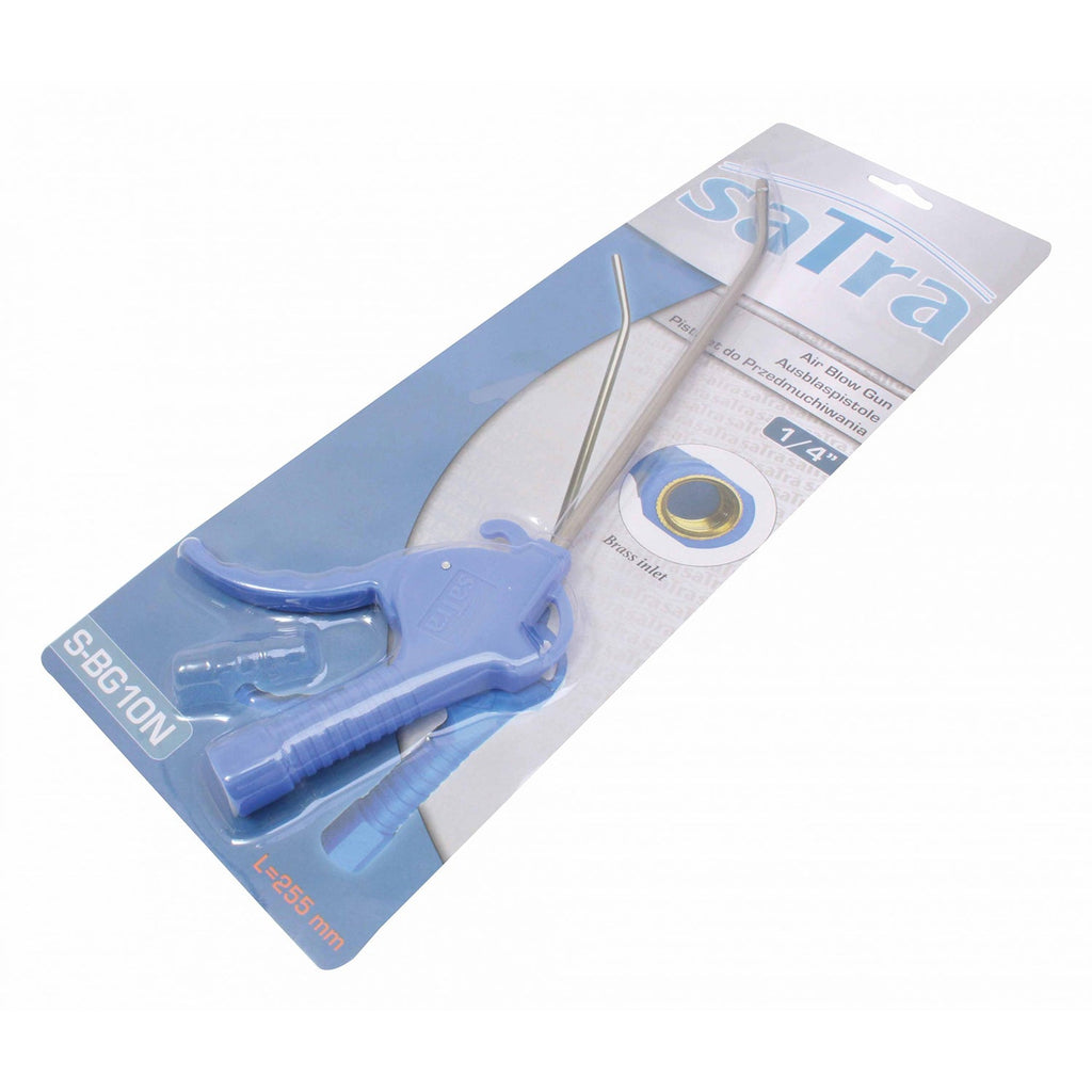 PIŠTOĽ NA FÚKANIE VZDUCHU 255MM SATRA je ideálna na čistenie nečistôt, ako je odstránenie prachu, zo zariadení alebo z úzkych priestorov. Má dĺžku 255 mm a pripojenie 1/4”.