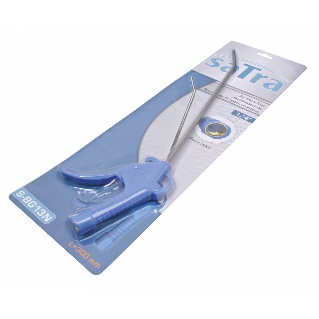 PIŠTOĽ NA FÚKANIE VZDUCHU 300MM SATRA je ideálna na čistenie nečistôt, ako je odstránenie prachu, zo zariadení alebo z úzkych priestorov. Má dĺžku 300 mm a pripojenie 1/4”.