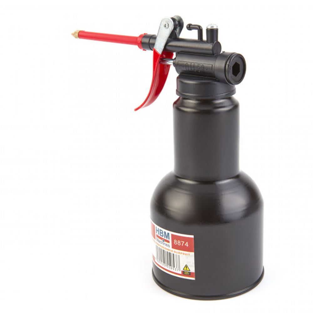 HRNČEK NA MAZANIE OLEJOM 500ML HBM je vhodný pre všetky typy maziva. Má kapacitu 500 ml a je vybavený dýzou s dĺžkou 80 mm. Hrnček má spúšť, ktorá poskytuje väčšiu kontrolu nad množstvom použitého oleja.