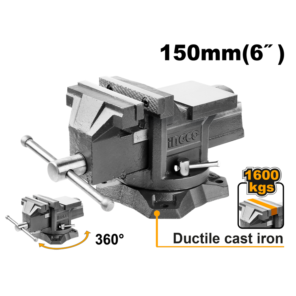 TÁTO OTOČNÁ SVORKA 150MM 6" INGCO je určená pre zámočnícke dielne, ako aj pre všeobecné mechanické a autoservisné práce. Vyrobená z vysoko kvalitnej liatiny, vybavená oceľovou nákovou.