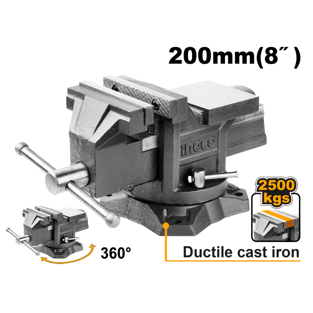 TÁTO OTOČNÁ SVORKA 200MM 8" INGCO je určená pre zámočnícke dielne, ako aj pre všeobecné mechanické a autoservisné práce. Vyrobená z vysoko kvalitnej liatiny, vybavená oceľovou nákovou.