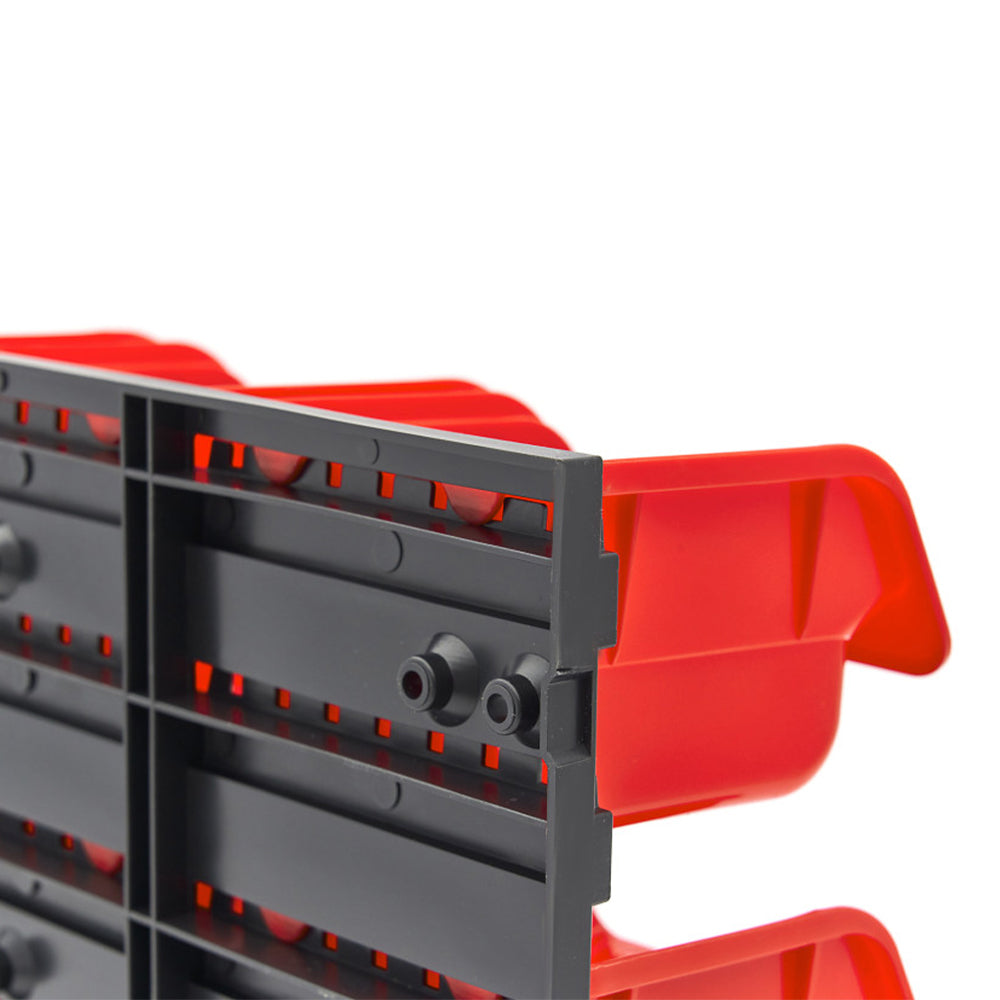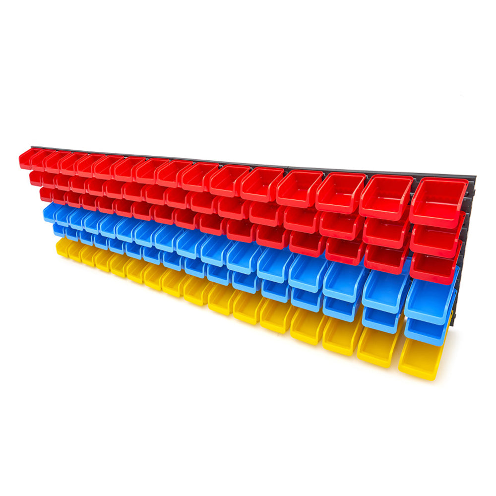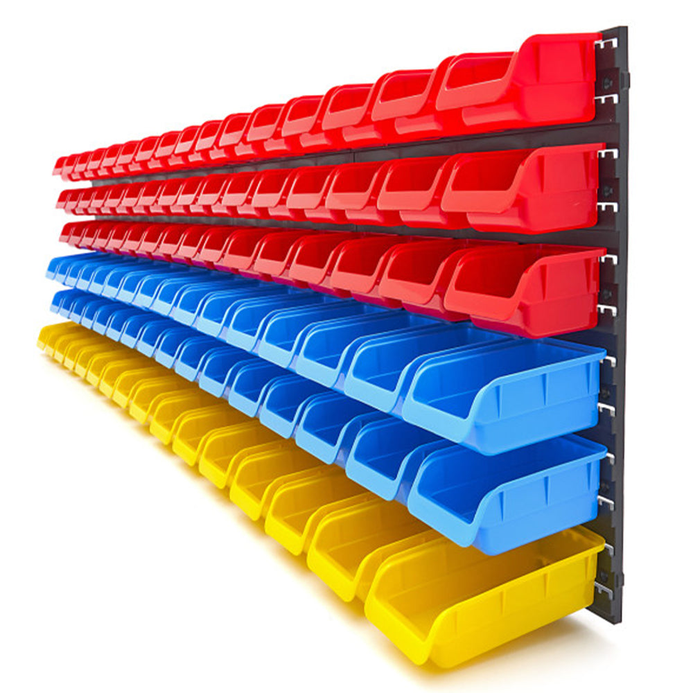 TENTO ORGANIZAČNÝ PANEL S 96 ÚLOŽNÝMI BOXY HBM je ideálny na skladovanie skrutiek, matíc a ďalšieho náradia rôznych veľkostí. Obsahuje 96 boxov v 3 rôznych veľkostiach a farbách.