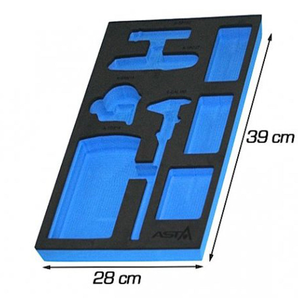 TENTO PENOVÝ MODUL ORGANIZÉR PRE SKRIŇU NA NÁRADIE SO ŠUVERNÝM MERADLOM A METROM je ideálny na organizáciu a usporiadanie náradia v špecializovaných skriniach. Jeho rozmery sú: dĺžka 39 cm, šírka 28 cm a výška 3 cm, pričom vložka môže zaberať polovicu zásuvky. Pena, z ktorej je tento modul vyrobený, neabsorbuje oleje a látky na báze ropy. Modul je kompatibilný s nasledujúcimi nástrojmi: GB11515 (SADA VRTÁKOV HSS NA KOV 1.0-6.0MM 51 KUSOV), GB9754 (MECHANICKÉ POSUVNÉ MERADLO 150 MM).