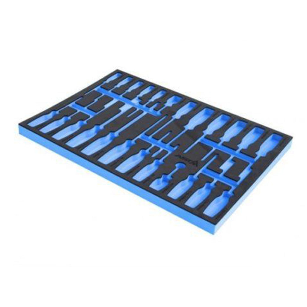 TENTO MODUL PENOVÁ SKRIŇA NA SKRUTKOVAČE ASTA je navrhnutý na profesionálnu organizáciu náradia v vozíkoch na náradie ASTA a SATRA. Vyrobený z odolnej peny, odolnej voči oleju a iným ropným látkam, vložka neabsorbuje tekutiny a je ľahko udržiavateľná, poskytuje ochranu proti nečistotám a opotrebeniu. Vďaka presnej konštrukcii má každý nástroj svoje pevné miesto, čo zaisťuje bezpečné uloženie a rýchly prístup počas práce. Modul má rozmery 39 cm dĺžka, 56 cm šírka a 3 cm výška.