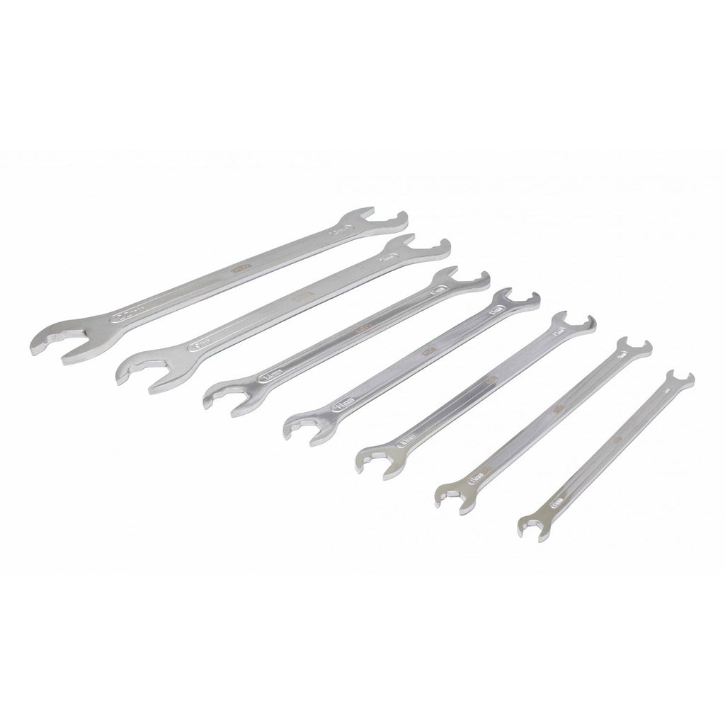 TENTO MODUL ULTRATENKÝCH PEVNÝCH KĽÚČOV S RÝCHLYM UVOLNENÍM 7 KUSOV je prispôsobený pre úzke priestory, kde nie je možné použiť bežný kľúč. Disponujú rýchlym uvoľnením, čo umožňuje opätovné nastavenie kľúča bez nutnosti jeho úplného vybratia. Kľúče sú vyrobené z tepelne spracovanej oceľovej zliatiny.