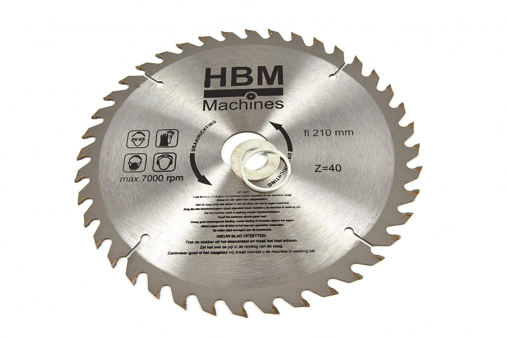 PÍLOVÝ KOTÚČ PRE OKRUŽNÚ PÍLU NA DREVO 210 X 24T AX 30MM HBM má upínací otvor 30 mm a je dodávaný s 2 redukčnými krúžkami.