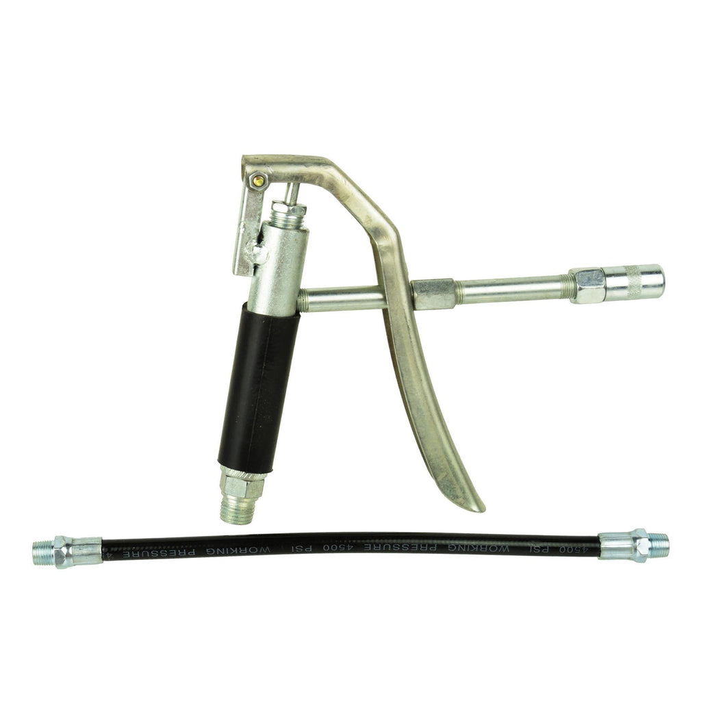 Tento PISTOL PRE MAZNICU S FLEXIBILNOU HADICOU je náhradný diel určený pre 6-litrové mazacie pumpy. Používa sa na vykonávanie údržbárskych a mazacích prác. Pištoľ je vybavená rovnou kovovou trubicou s dĺžkou 6 cm, ako aj flexibilnou hadicou s dĺžkou 24 cm. Okrem toho má protišmykovú rukoväť a 4-čelusťovú spojku.