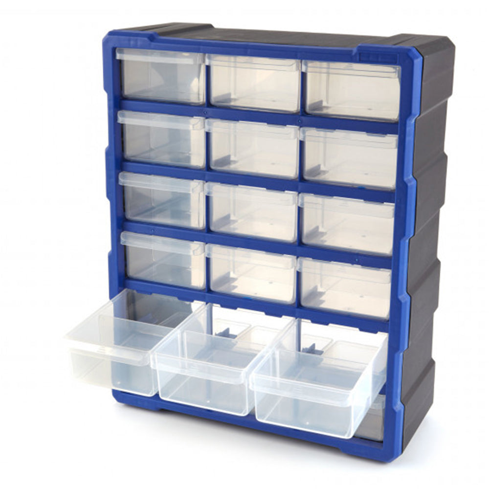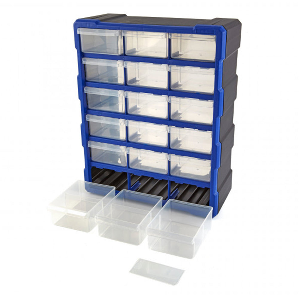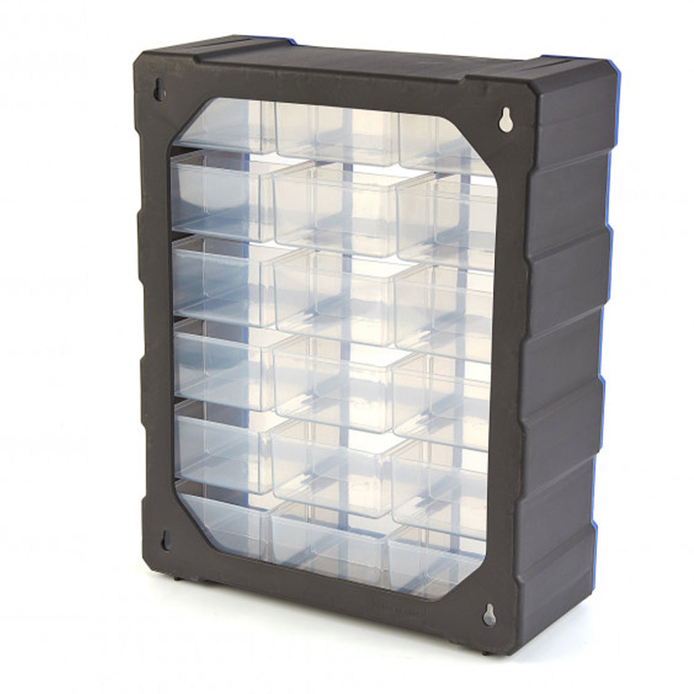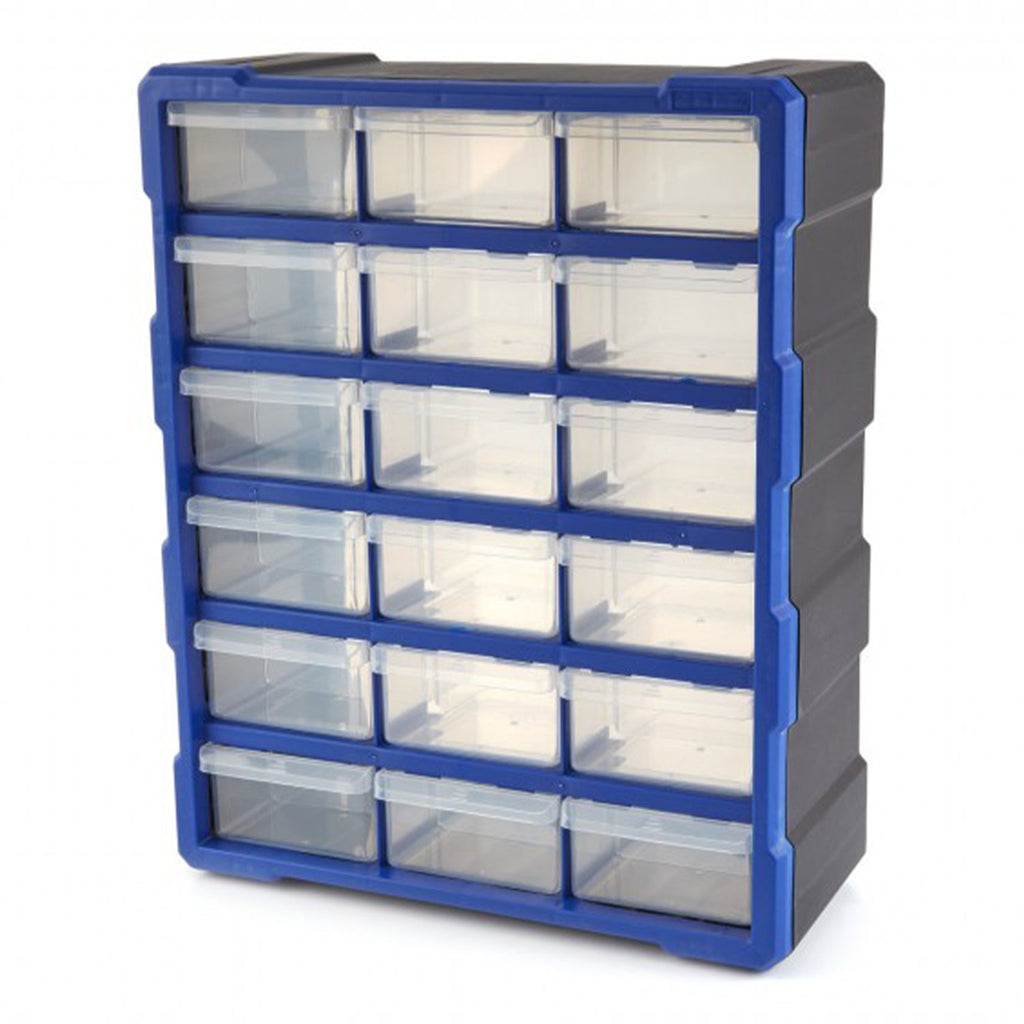 TÁTO PLASTOVÁ ORGANIZAČNÁ SKRINKA NA SKLADOVANIE S 18 ZÁSUVKAMI je ideálna na uskladnenie malých dielov, ako sú skrutky, matice a iné upevňovacie prvky.