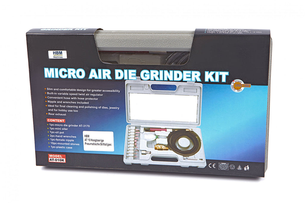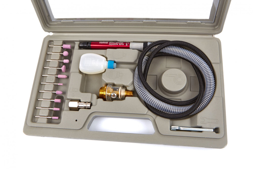 TÁTO PNEUMATICKÁ MIKROBRÚSKA má tlak približne 6 Bar, priemer 3 mm, rýchlospojku a 2 kľúče na skľučovadlo.