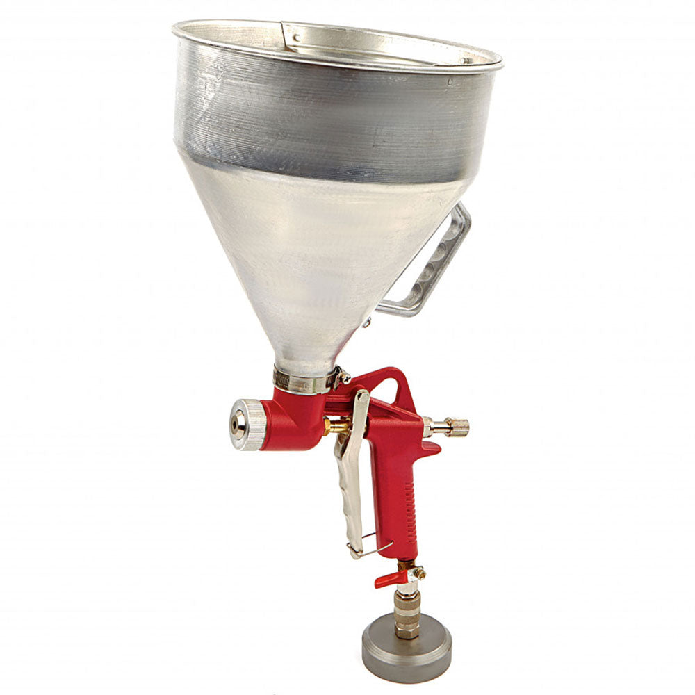 Tento PNEUMATICKÝ PIŠTOĽ NA STIERKU 5L sa používa na striekanie stierky/omietky/sadra/farba. Obsah dobre premiešajte, potom naplňte násypku (maximálne 5L), dekoratívna sadra musí mať zrnitosti 1mm. Nastavte zariadenie pomocou tlačidla na reguláciu prívodu vzduchu a skrutky na množstvo materiálu. Môžete striekať steny v líniách alebo z väčšej vzdialenosti pre lepší výsledok.