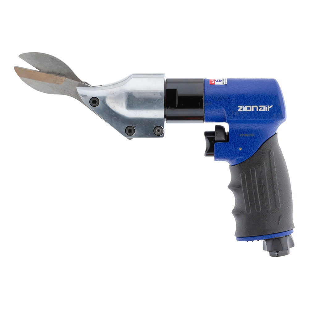 TIETO PNEUMATICKÉ NOŽNICE NA PLECH ZIONAIR režú väčšinu typov plastov a všetky druhy hliníka, plechu a ocele do hrúbky 1,5 mm. Nožnice sú vybavené pohodlnou gumovou rukoväťou s mäkkým úchopom a spevnenými čepeľami.