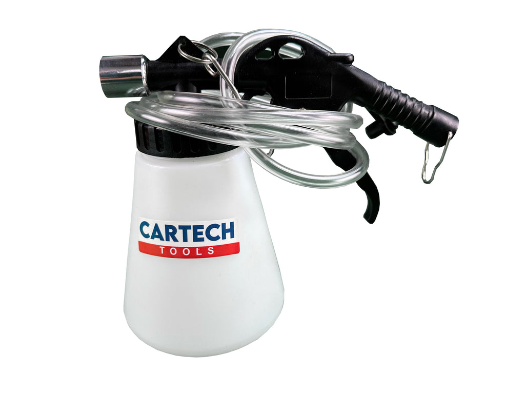TOTO PNEUMATICKÉ ZARIADENIE NA ODVZDUŠNENIE BRZDOVEJ KVAPALINY GEBO TOOLS je nevyhnutné pre správnu údržbu brzdového systému. Efektívne a ľahko použiteľné, pomáha odstrániť vzduch z brzdových potrubí, čím zabezpečuje optimálnu činnosť bŕzd. Kapacita zariadenia je 1 l, spotreba vzduchu je 180 l/min a tlak vzduchu je medzi 90 a 120 psi (6–8 barov).