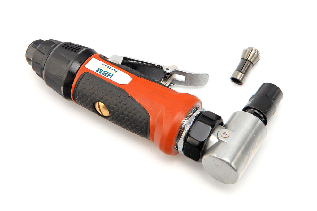 PNEUMATICKÁ UHLová BRÚSKA S NASTAVITEĽNÝMI OTÁČKAMI HBM sa dodáva s 2 upínacími kolíkmi 3 a 6 mm. Má ľahké hliníkové puzdro s mäkkým dvojfarebným úchopom, bezpečnostnú ovládaciu páku a prívod vzduchu je variabilne nastaviteľný.