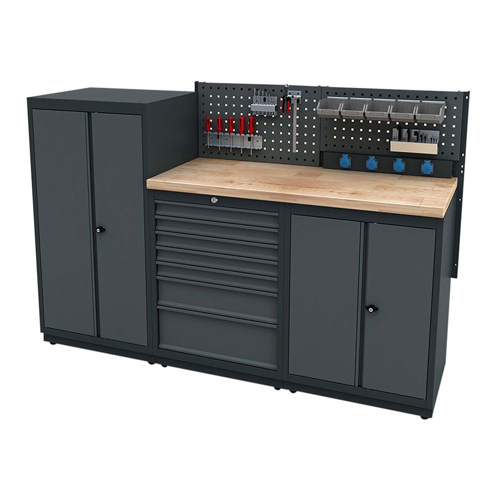 Modulárny kovový nábytok do dielne, zostava s pracovným stolom 1,88m model B