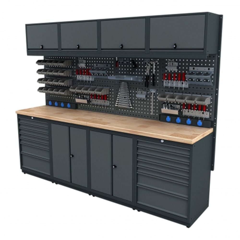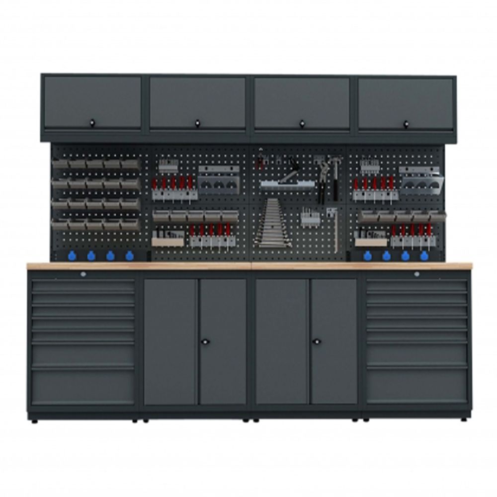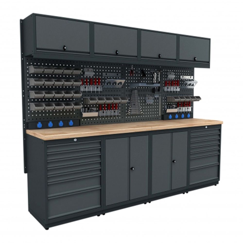 Modulárny nábytok do dielne, zostava s pracovným stolom 2,53m model E