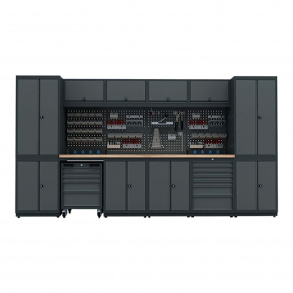 Modulárny nábytok do dielne, zostava s pracovným stolom 3,72 m model G
