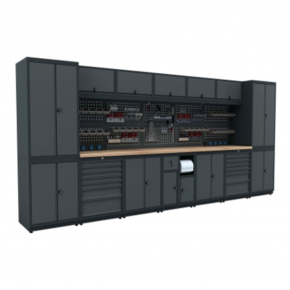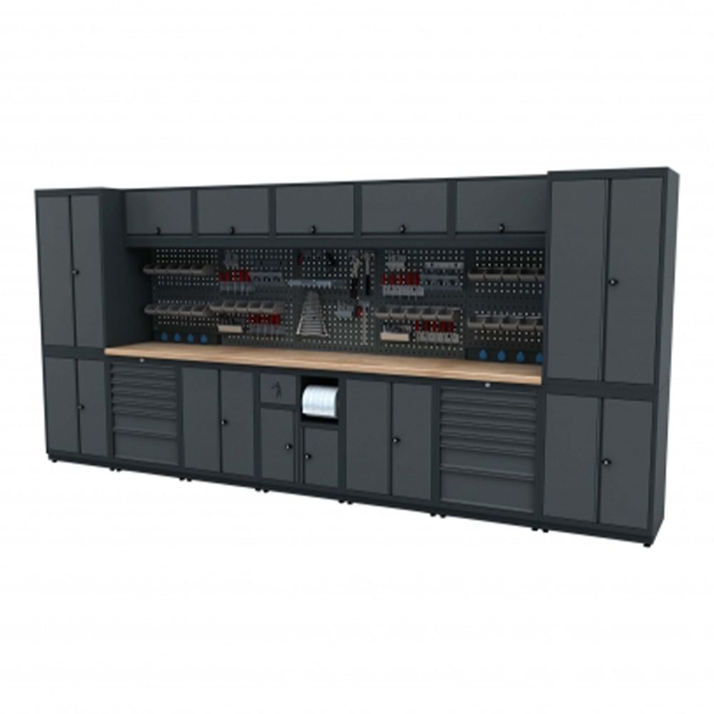 Modulárny nábytok do dielne, zostava s pracovným stolom 4,34m model I