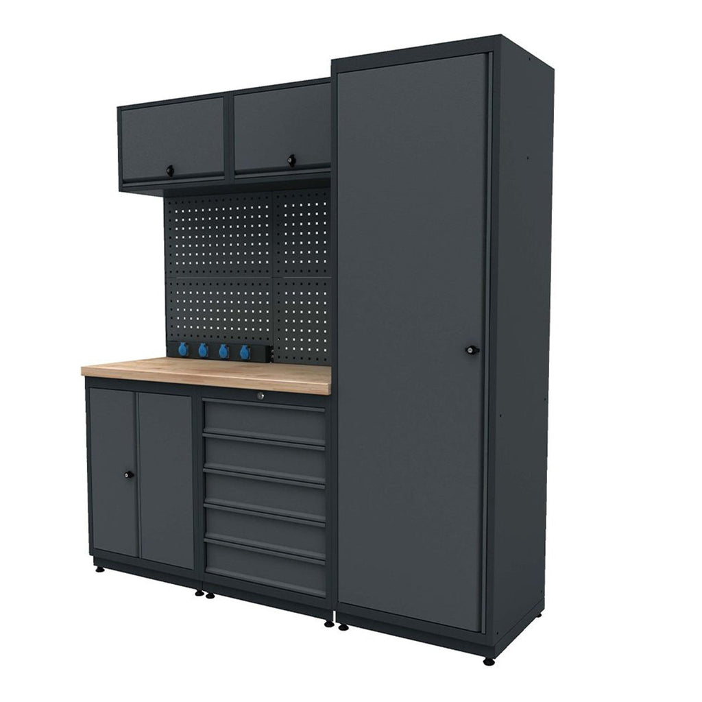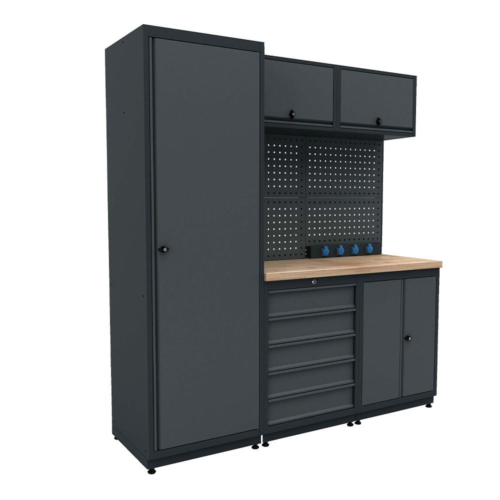 Modulárny kovový nábytok do dielne, zostava s pracovným stolom 1,86m model 2