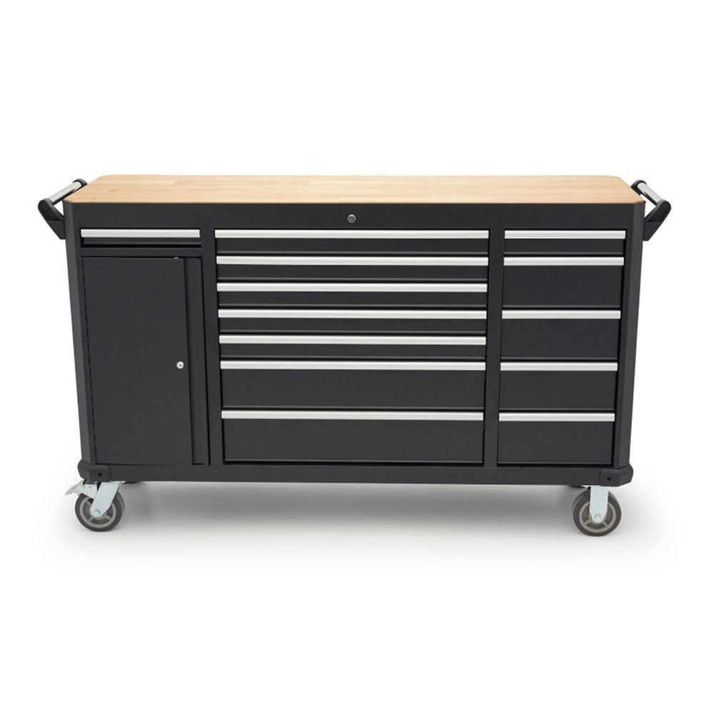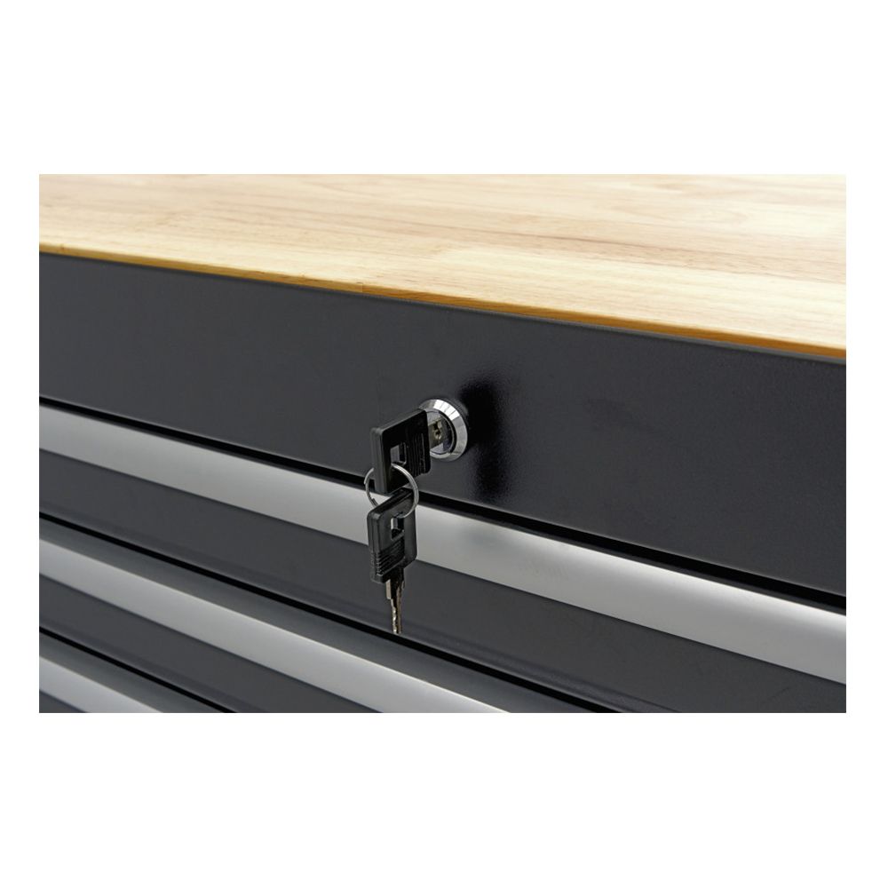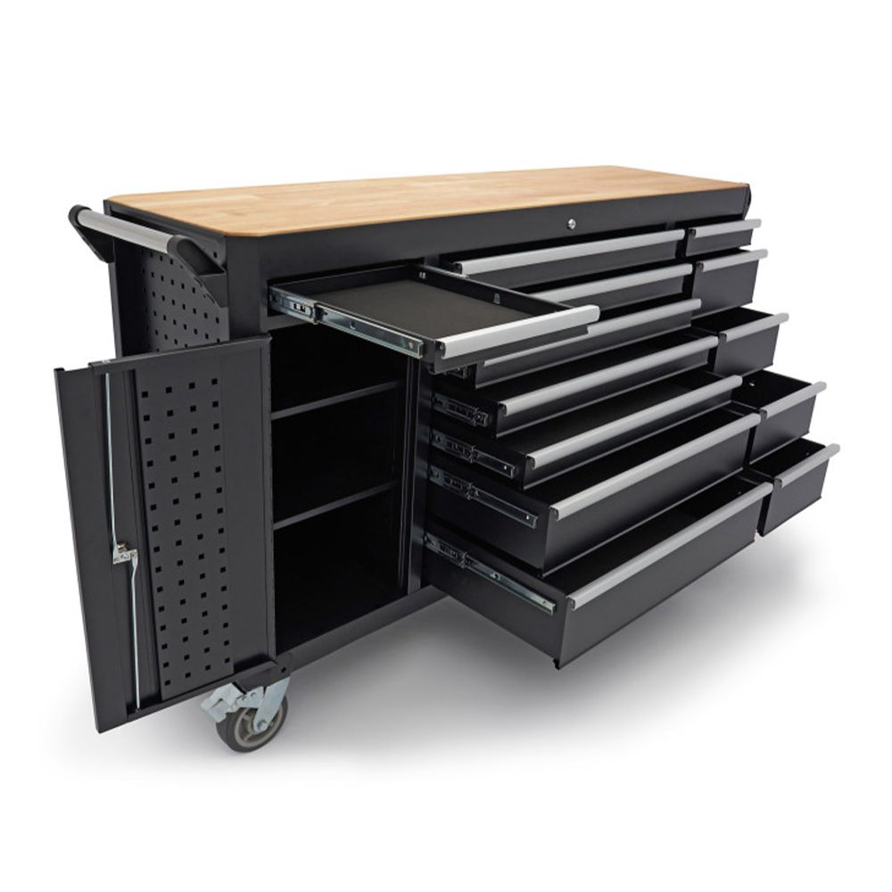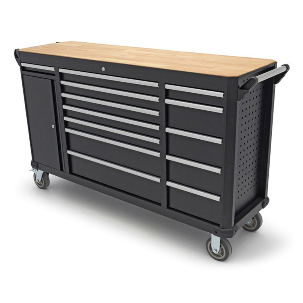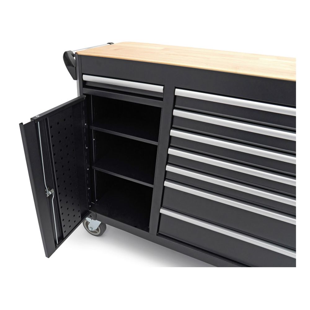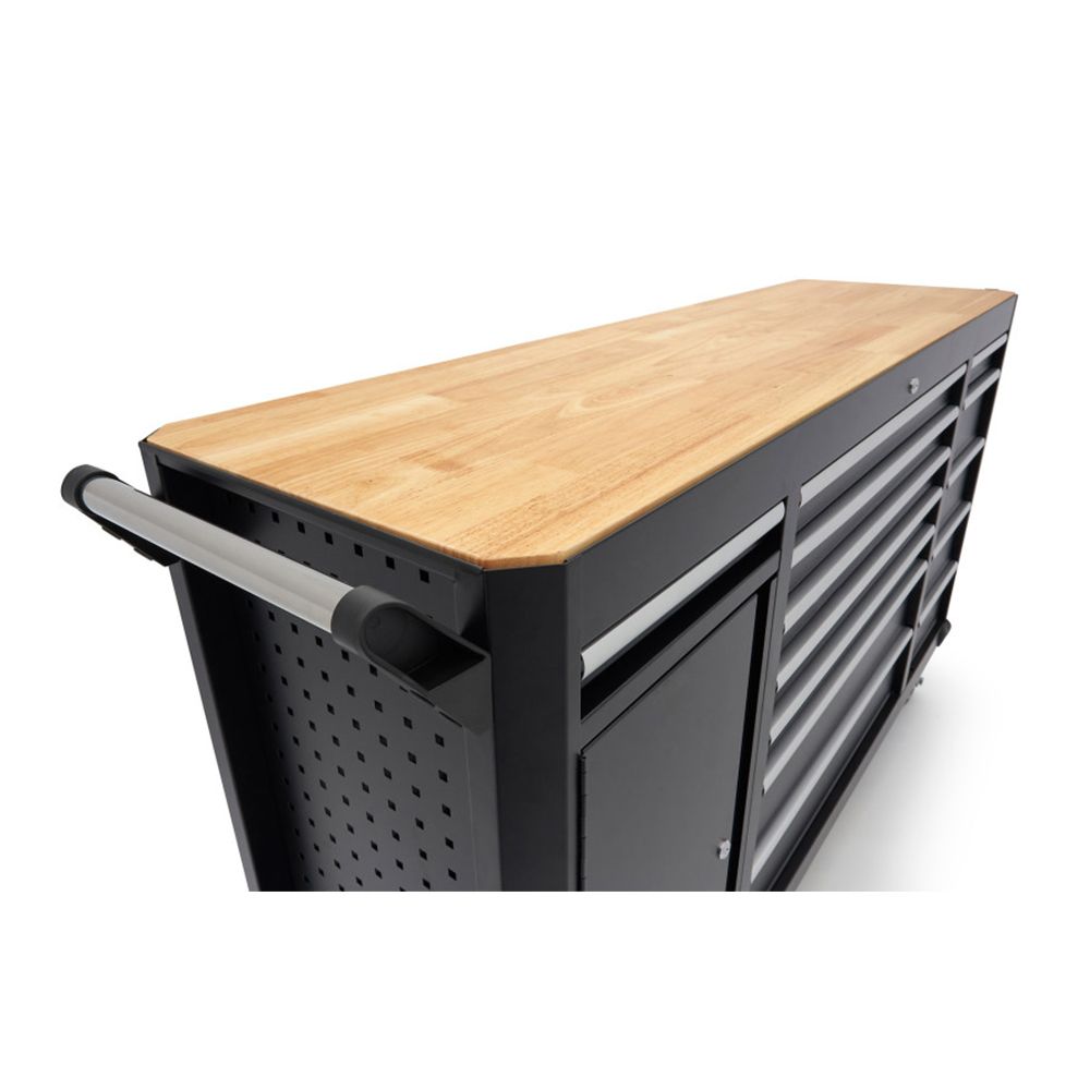 Pojazdný pracovný stôl s 13 zásuvkami a drevenou pracovnou doskou, 168cm HBM