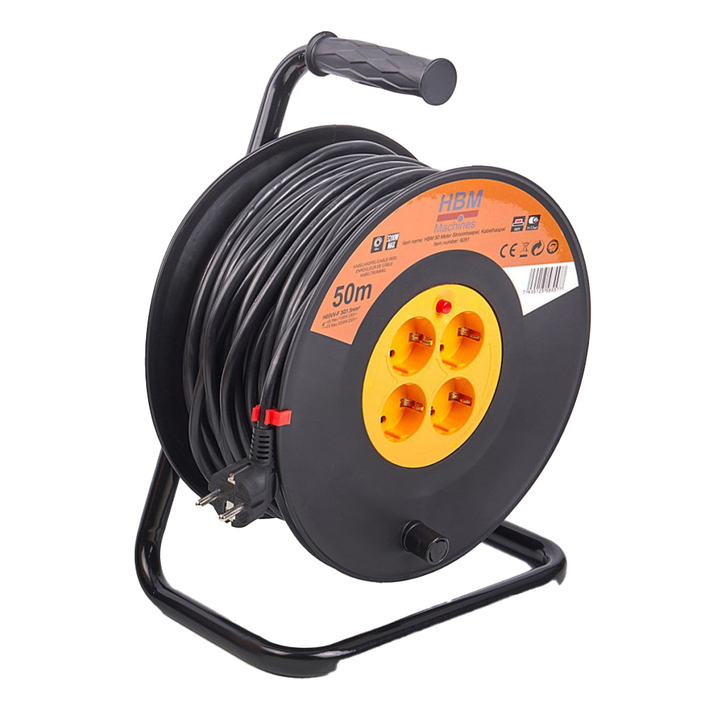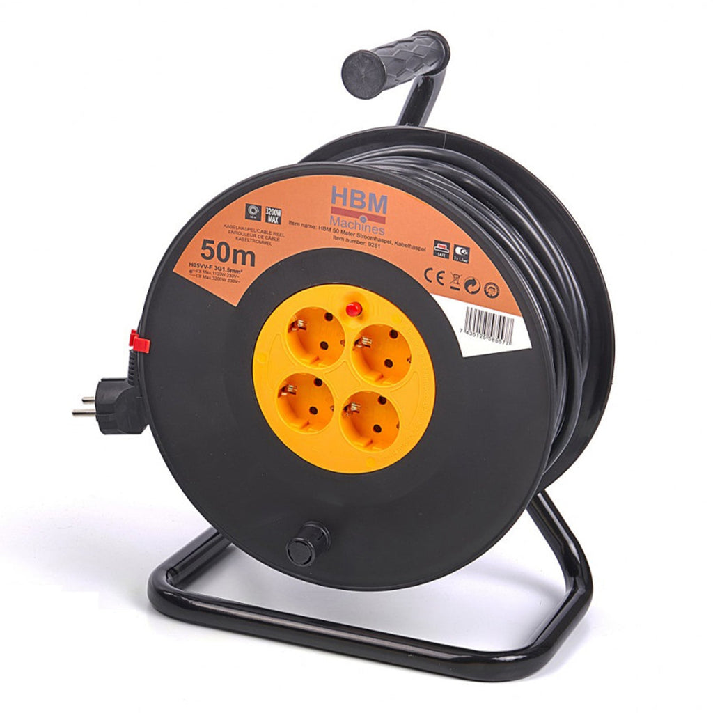 TENTO ELEKTRICKÝ PREDLŽOVACÍ BUBON 3 X 1.5MM 50M je ľahko použiteľný, pretože má rukoväť a navíjacie tlačidlo. Má tiež prepäťovú ochranu a osvetlený bezpečnostný vypínač.