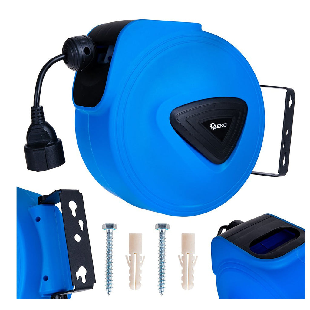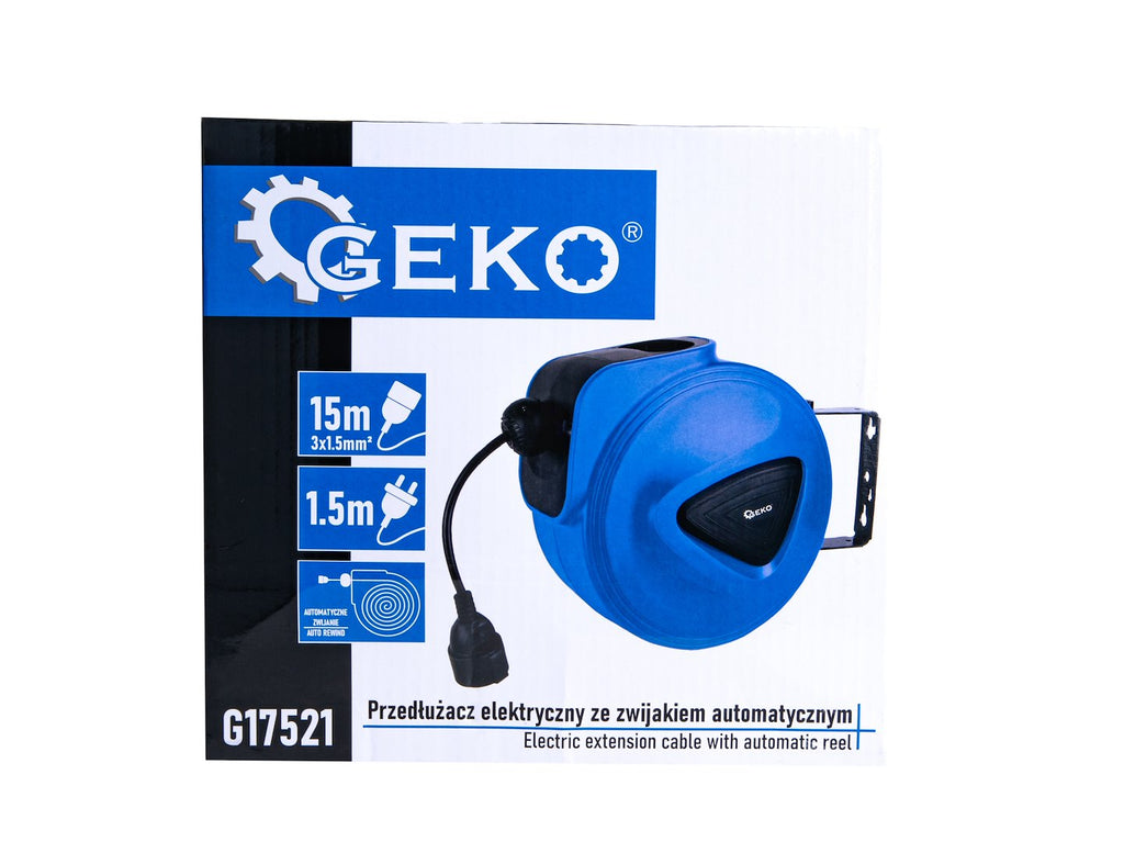 TENTO ELEKTRICKÝ PREDLŽOVACÍ BUBON 3X1.5MM 15M je vybavený štandardnou zásuvkou 230V~50Hz. Predlžovacia cievka má rozmery 27.5 x 27.5 cm a montážny držiak meria 3.5 x 13.5 cm. Dĺžka napájacieho kábla je 1.5 metra, predlžovací kábel má 15 m a prierez 3x1.5 mm². Trieda ochrany je IP20.
