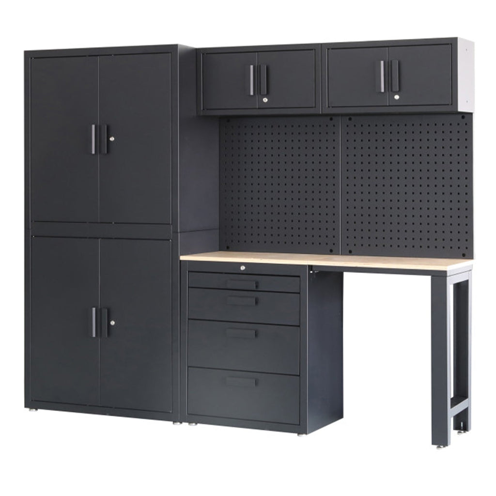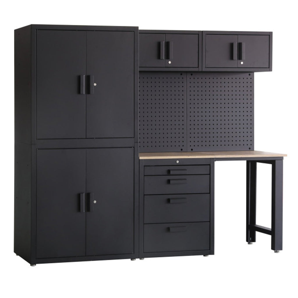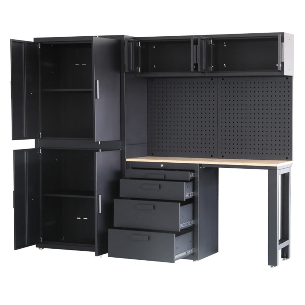 Premium zostava dielenského nábytku, kovová, 8 dielov, matná čierna