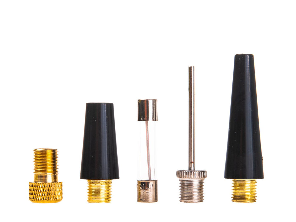 Obsah balenia: kompresor, Li-ion batéria, 50 cm vzduchová hadica, USB-C kábel, kábel do zapaľovača, 2 plastové trysky, ihlová tryska na lopty, mosadzný adaptér s tesnením pre bicykle a náhradná poistka 15 A / 250 V.