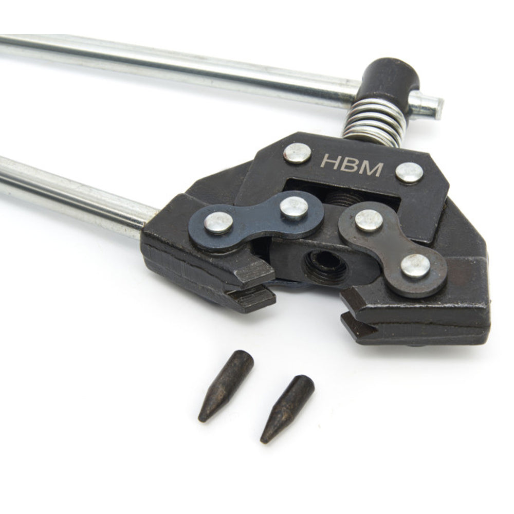 ZAŘÍZENÍ NA NITOVÁNÍ A ŘEZÁNÍ ŘETĚZŮ HBM je vhodné na nýtování alebo rezanie reťazí ANSI s dĺžkami od 25 do 60 mm.