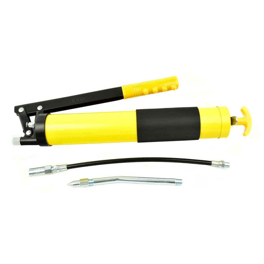 Tento PROFESIONÁLNY RUČNÝ MAZNACÍ PISTOL 600ML GEKO má pracovný tlak 4 500 psi, ale maximálny tlak 12 000. Pripojenie je 1/8”. Pištoľ je vybavená vzduchovým ventilom s rýchlym uvoľnením a špeciálnym protišmykovým povrchom úchopu. Rukoväť je v tvare T a je vyrobená z mäkkej gumy. Kapacita pištole je 600 ml a množstvo uvoľnené na zdvih sa pohybuje medzi 0,8 a 1,2 g na zdvih.
