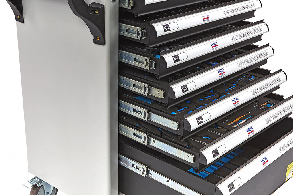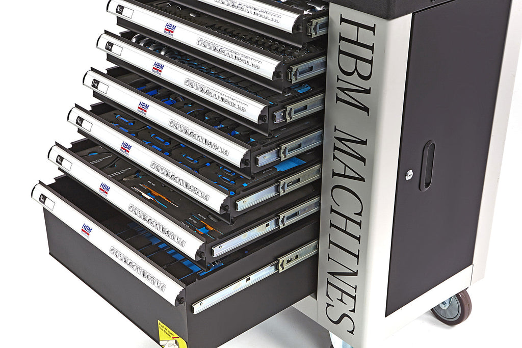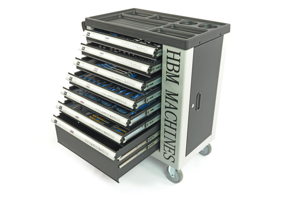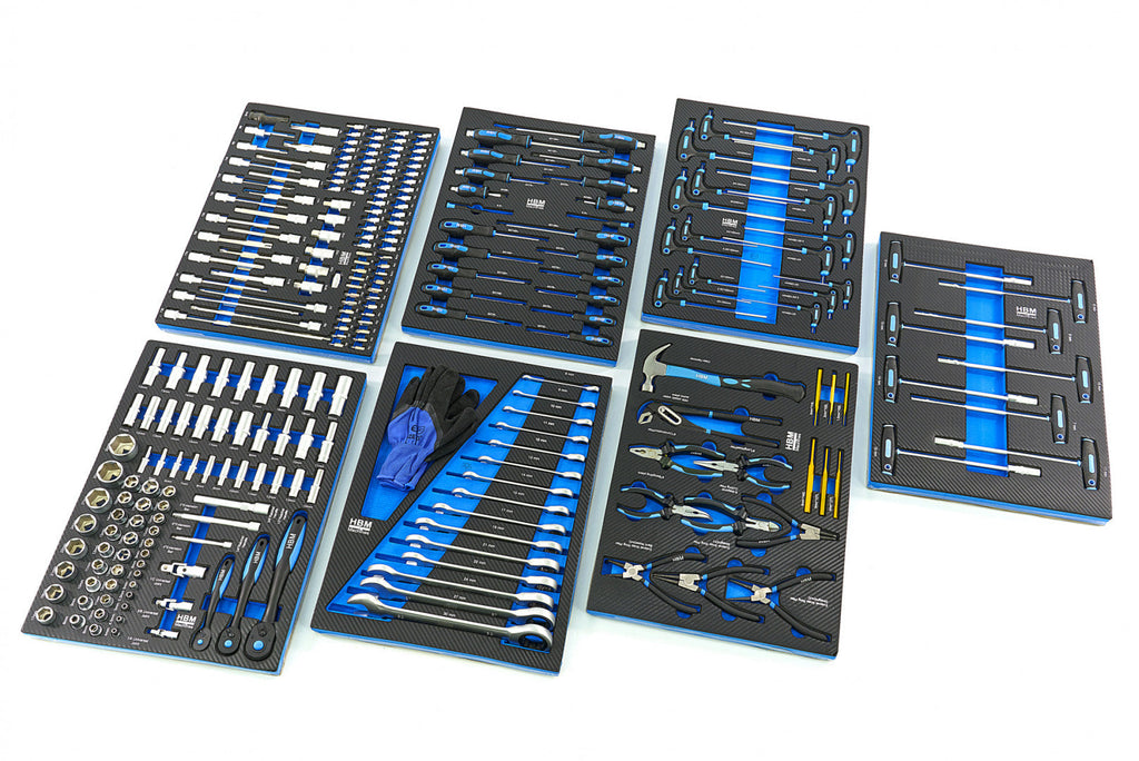 TÁTO PROFESIONÁLNA SKRIŇA NA NÁRADIE HBM SO 7 ZÁSUVKAMI, 262 KUSMI, 7 MODULMI CARBON – PREMIUM, HOLANDSKO je užitočná pre každú dielňu alebo garáž. Skrinka má 7 zásuviek vybavených rôznymi dielmi.