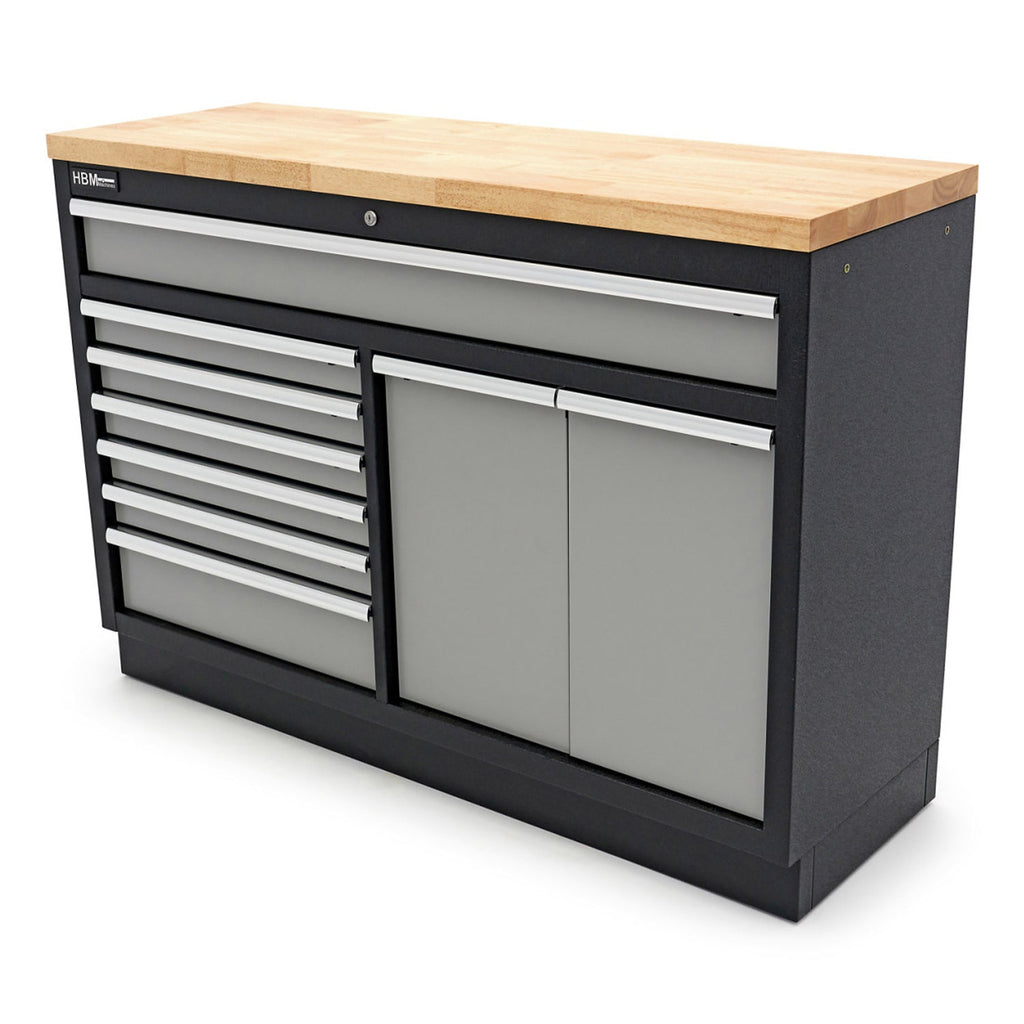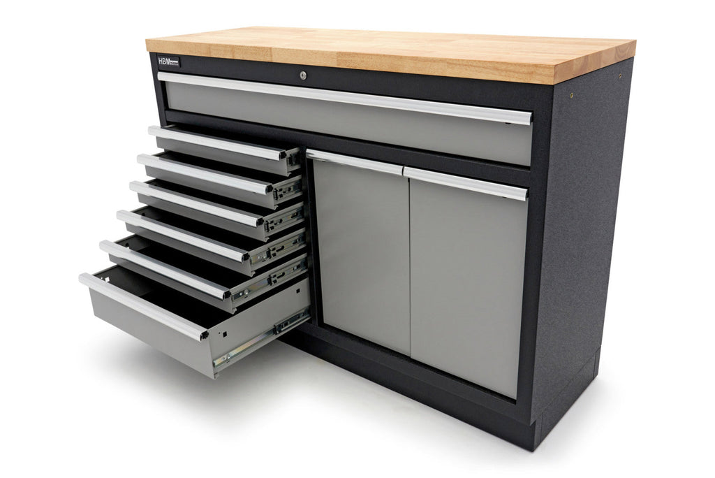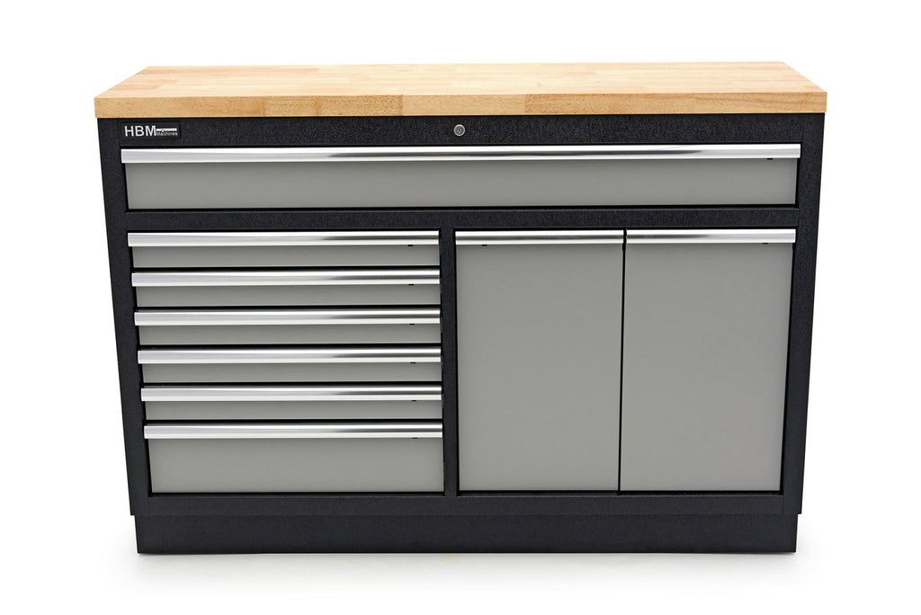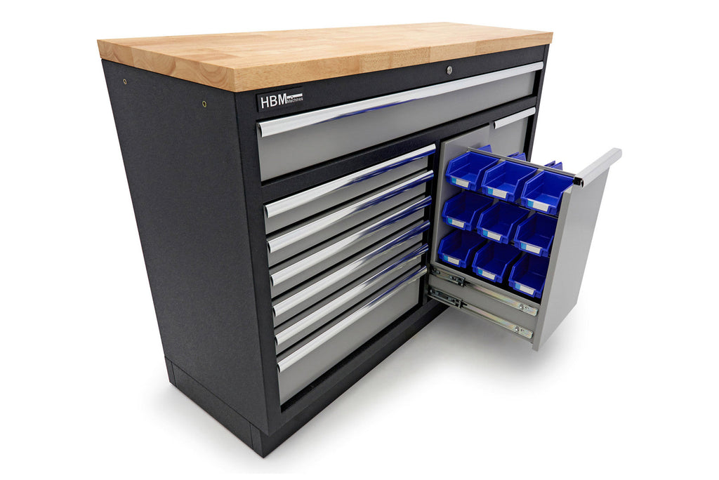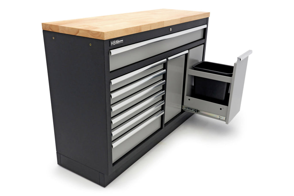 Profesionálny pracovný stôl so skrinkou na náradie, 136cm, 9 zásuviek HBM