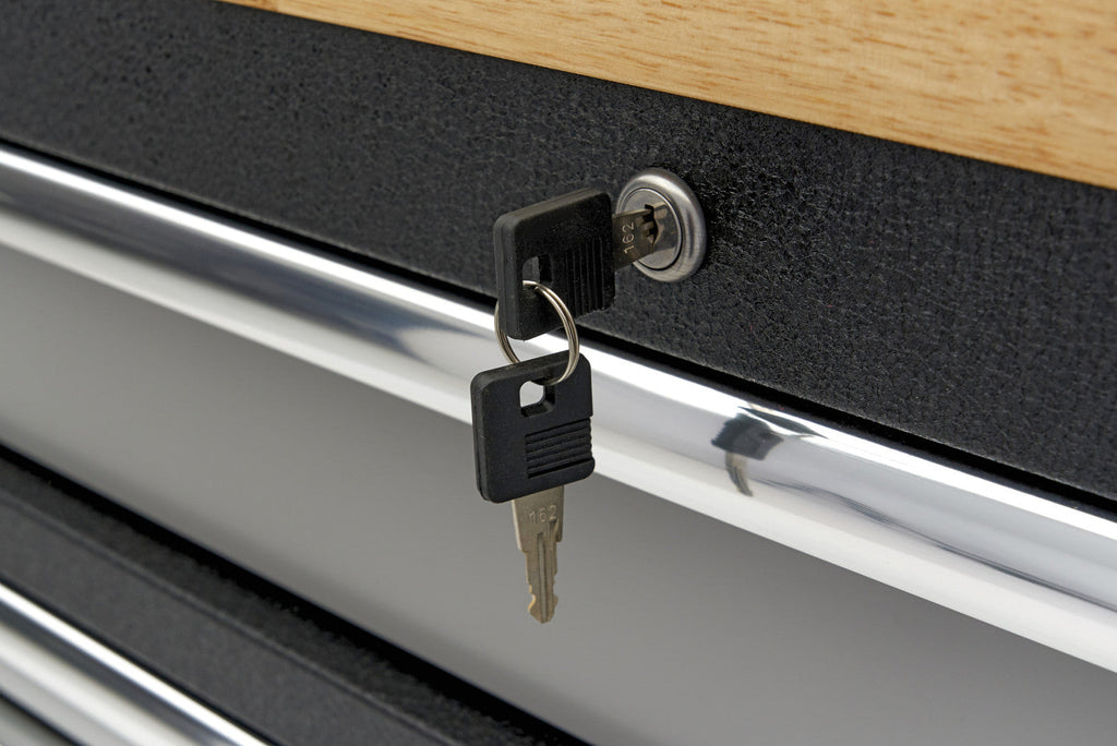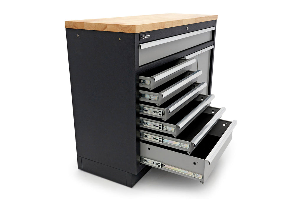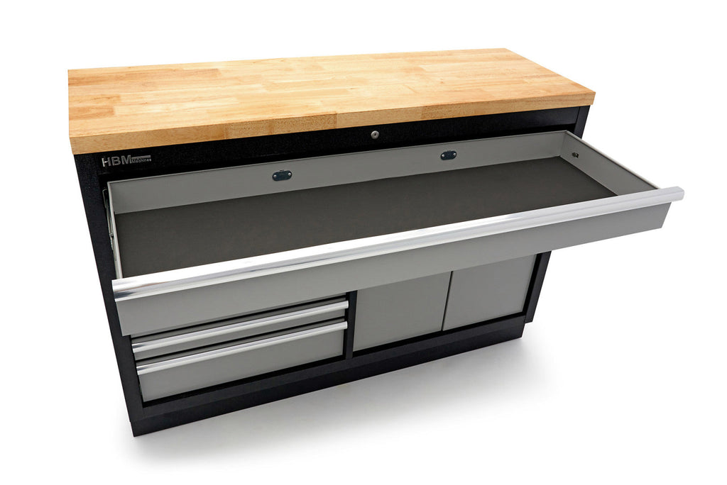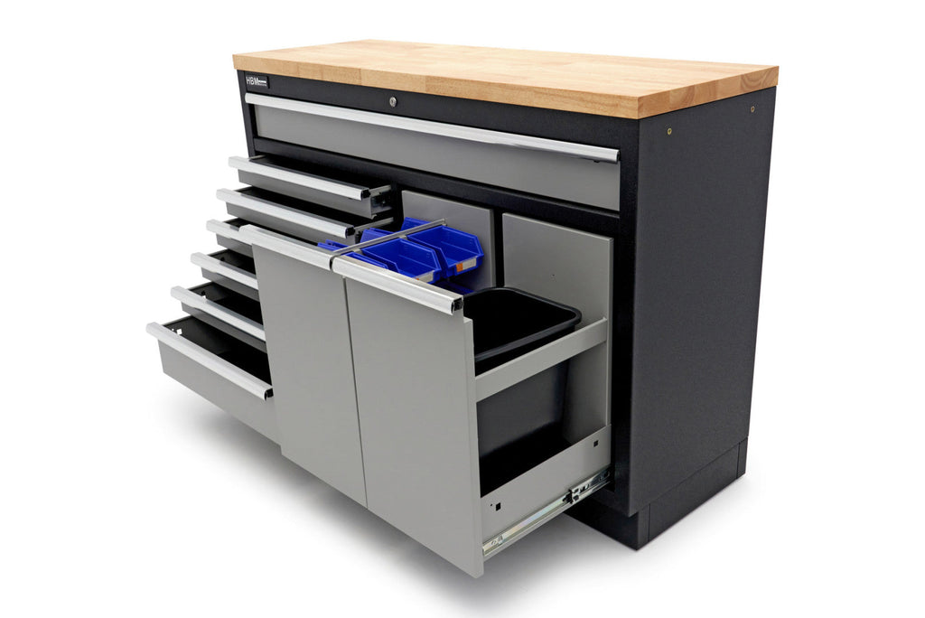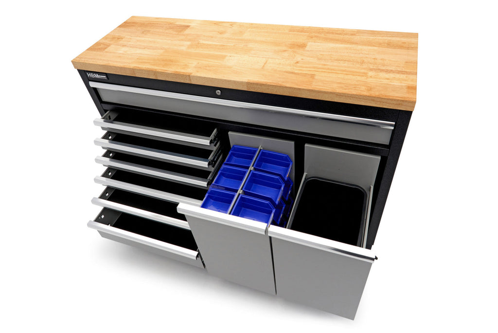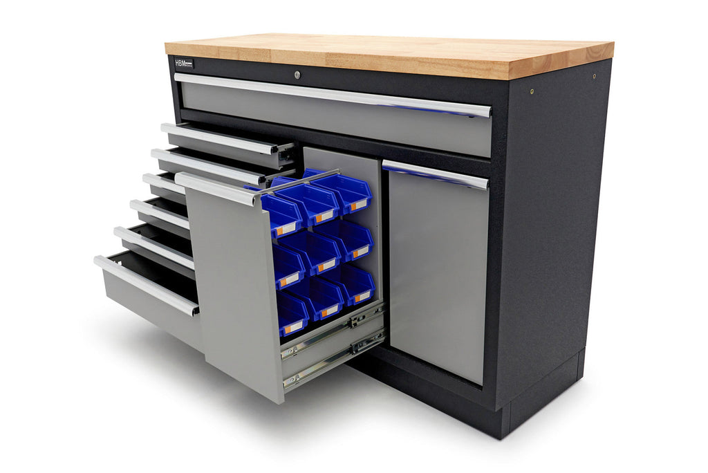 Profesionálny pracovný stôl so skrinkou na náradie, 136cm, 9 zásuviek HBM
