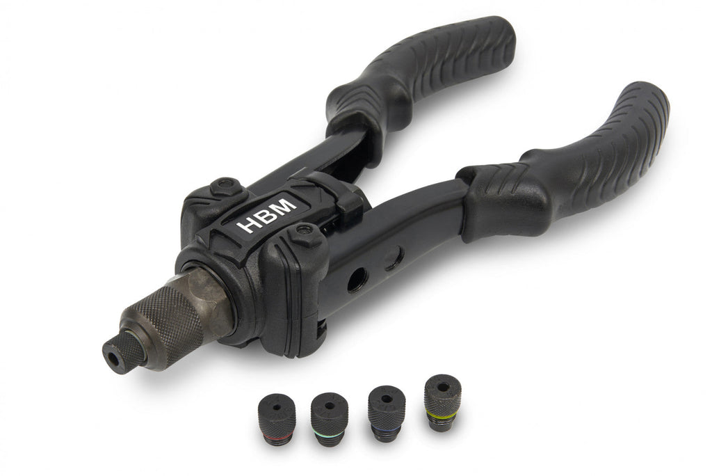 TIETO PROFESIONÁLNE KLIEŠTE NA NITOVANIE POPNITOV A MATÍC HBM sa používajú na spájanie materiálov pridaním nitovacích matíc so závitom vo vnútri. Sú vybavené rukoväťami potiahnutými protišmykovou gumou.