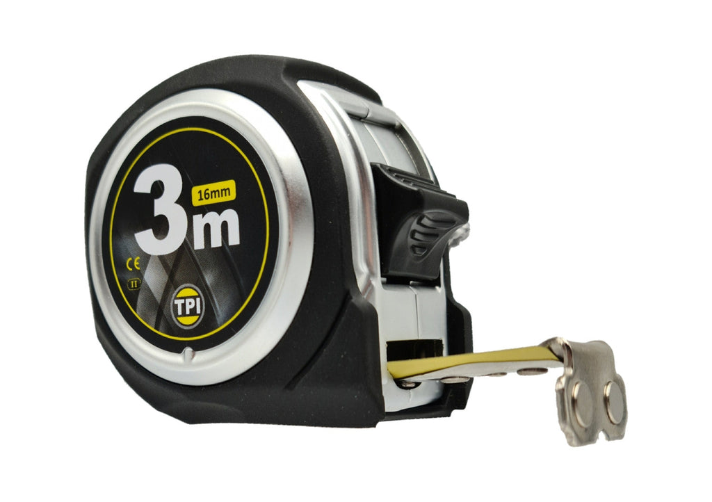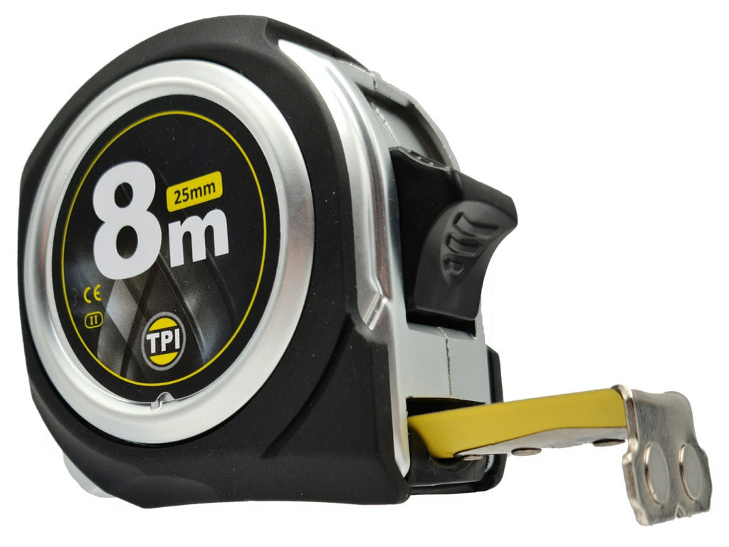 TENTO PROFESIONÁLNY RETRAKČNÝ MERACÍ PÁS 5M HBM má extra kompaktné puzdro z ABS so zábranou proti UV žiareniu a rukoväťou s protišmykovou úpravou. Meradlo má čierne plastové tlačidlo na zastavenie a žltý kovový merací pás s metrickým čítaním. Je tiež vybavený kovovým háčikom s 2 magnetmi, ktoré sú spevnené 4 nitmi. Dá sa pripevniť na nohavice pomocou kovovej spony. Meradlo je schválené CE podľa triedy presnosti EÚ.