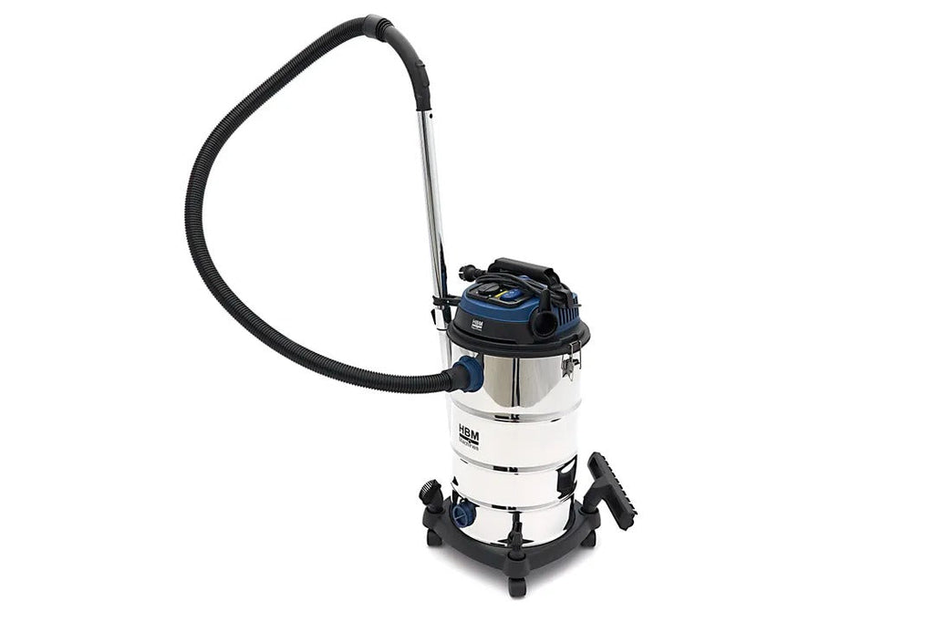 PROFESIONÁLNY MOKRÝ/SUCHÝ VYSÁVAČ, 1600W, 40L KOMPAKTNÝ A TICHÝ HBM je určený na použitie v prostrediach ako dielne, garáže alebo staveniská. Kryt je vyrobený z nehrdzavejúcej ocele. S hladinou hluku 85 dB a sacím výkonom nad 19 kPa zabezpečuje zariadenie efektívny zber prachu, nečistôt a kvapalín. Prietok vzduchu je 16 litrov za minútu a sacia hadica s priemerom 32 mm a dĺžkou 1,5 metra umožňuje ľahký prístup do ťažko dostupných miest. Dĺžka napájacieho kábla 3,5 metra poskytuje voľnosť pohybu na rozsiahlých plochách.