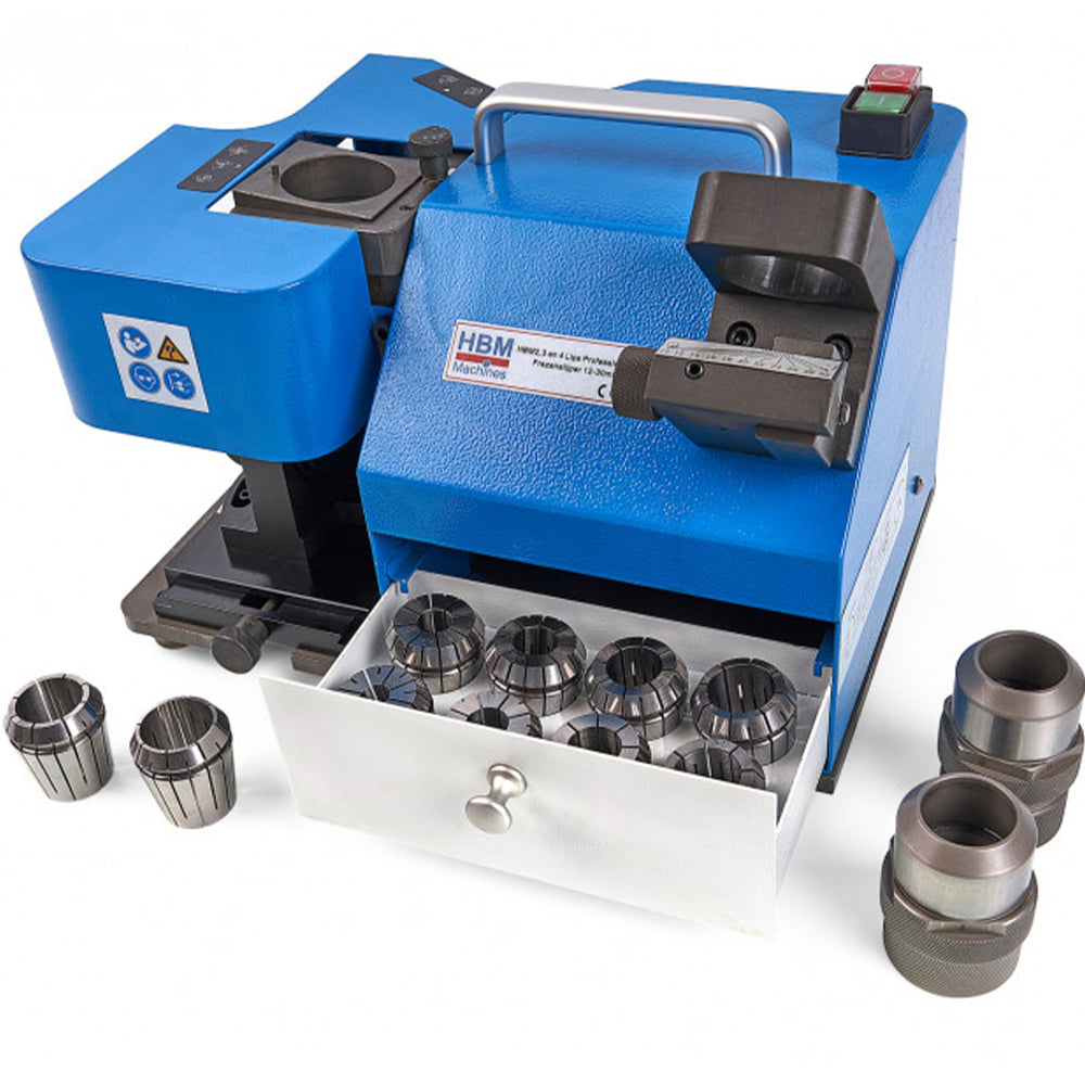 TÁTO PROFESIONÁLNA BRÚSKA NA FRÉZY 12-30 MM je užitočný stroj v dielňach na spracovanie dreva a kovu. Táto brúska na frézy je navrhnutá na presné ostrenie rýchlorezných fréz s priemerom od 12 do 30 mm, s uhlom rezu od 0 do 5 stupňov.