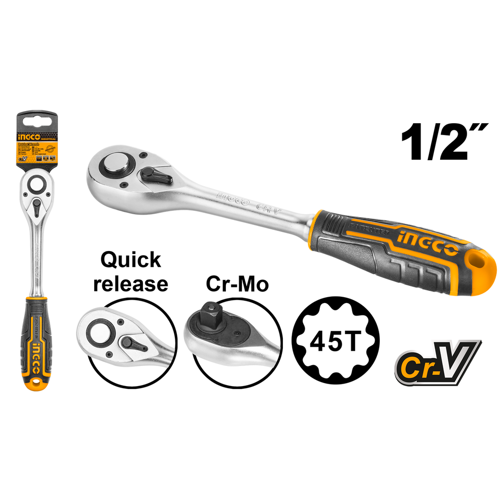TÁTO RAČŇA 1/2 45T INGCO je vyrobená z vysokokvalitných materiálov, tepelne spracovaná a s pochrómovaným povrchom. Rukoväť je z PVC, čo zaručuje dobrý úchop a pohodlné ovládanie.