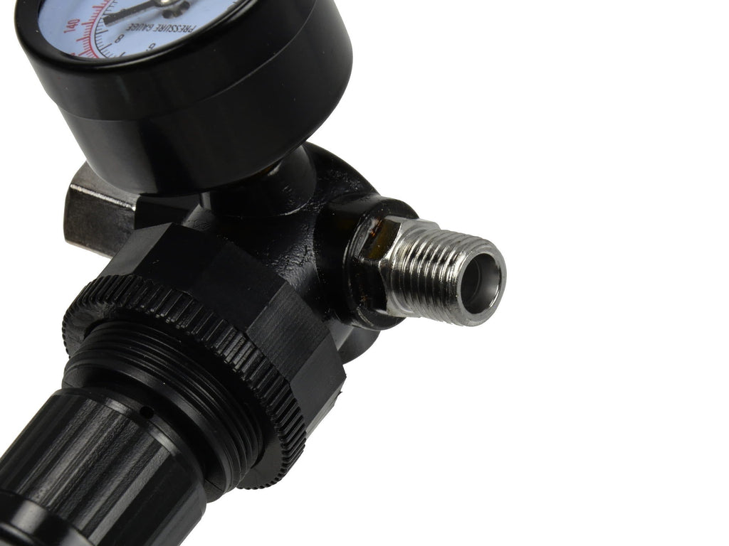 TENTO REGULÁTOR TLAKU PRE STRIEKACIU PIŠTOĽ HVLP znižuje a udržiava konštantný pracovný tlak v pneumatickom systéme striekacích pištolí HVLP. Je vyrobený z odolného polykarbonátu, pracuje v rozsahu tlaku od 1 do 12 bar a stupnica manometra je od 0 do 12 bar. Disponuje pripojením 1/4”.