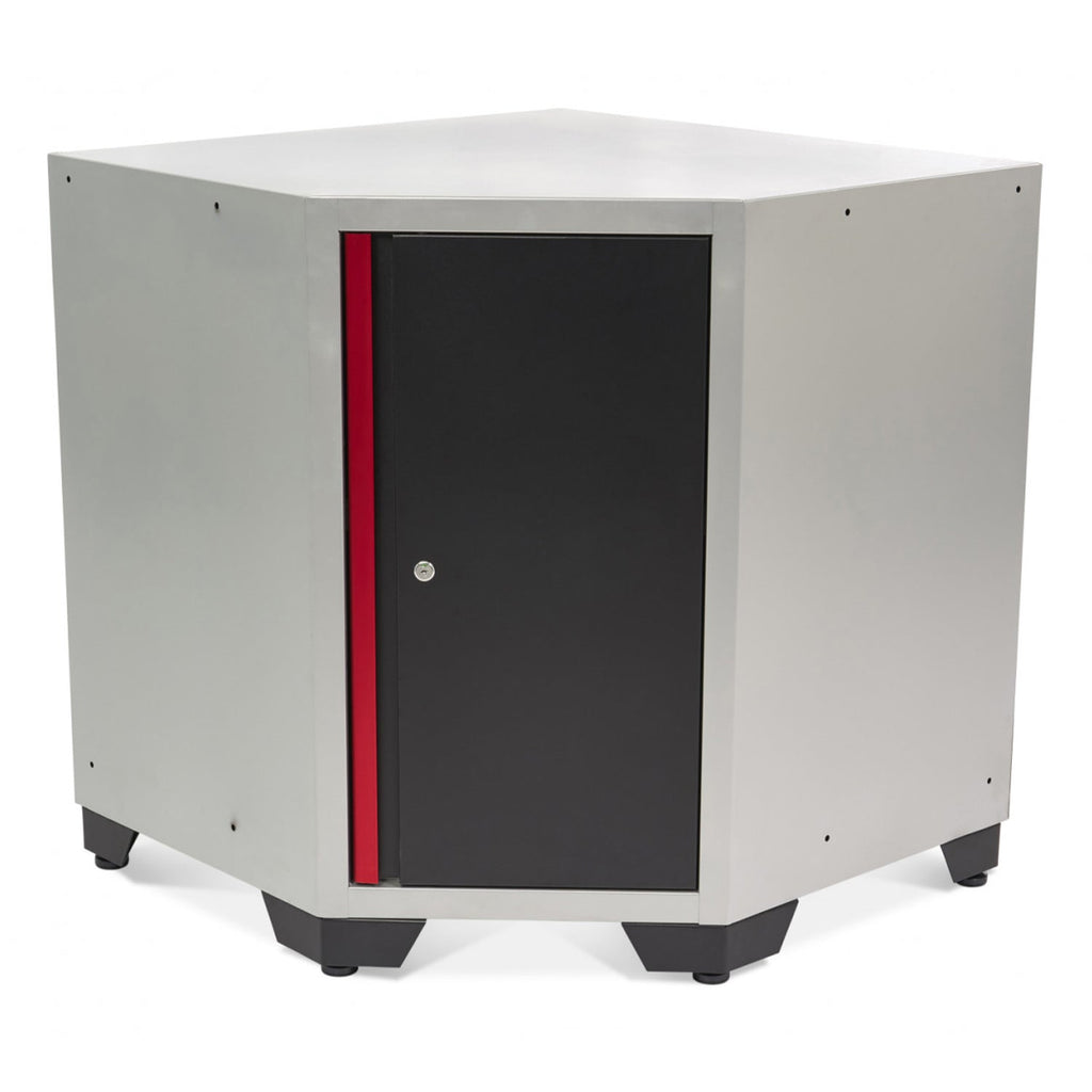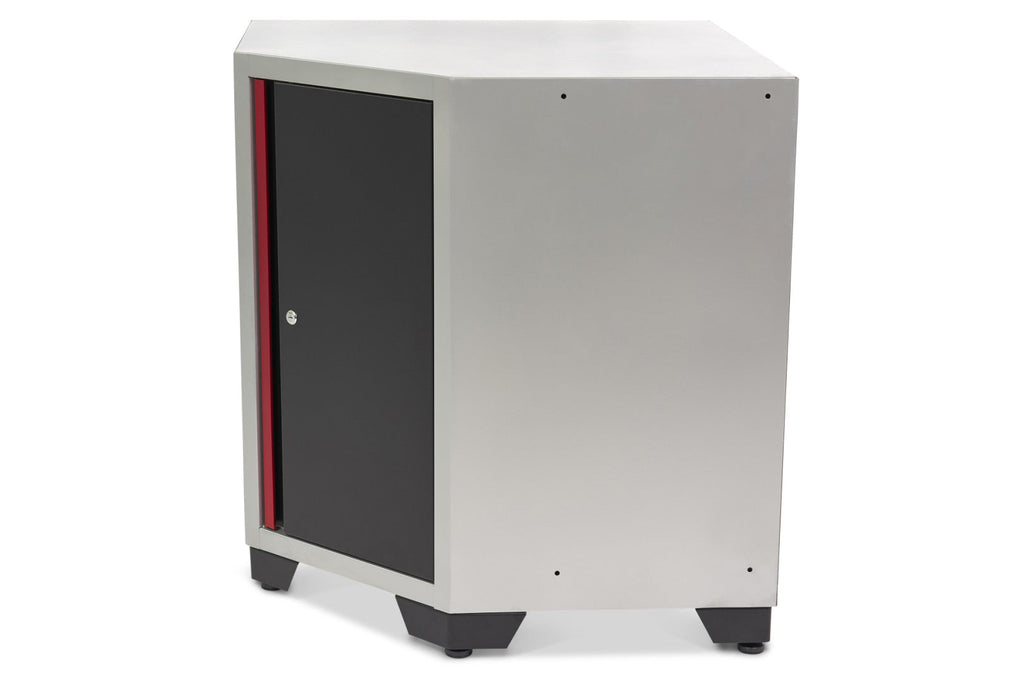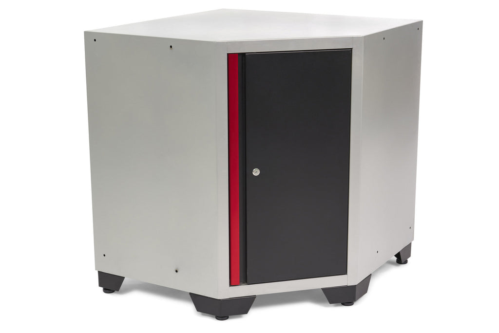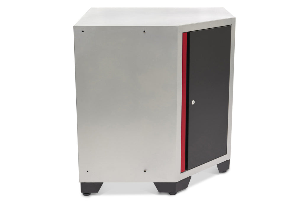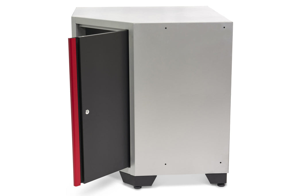 TÁTO ROHOVÁ SKRIŇA S DVERAMI PRE SERVISNÚ DIELŇU je pevná zváraná konštrukcia, ktorá nevyžaduje montáž. Pomocou našich výrobkov si môžete zostaviť skriňu tak veľkú, ako potrebujete. Čo je presne vhodné pre vašu dielňu a pretože je veľmi pekná, dodáva dielni oveľa profesionálnejší vzhľad. Steny systému sú v metalickej sivej (striebornej) farbe. Zásuvky a dvere sú v matnej čiernej farbe a úchyty a horné dvierka zásuviek sú vždy vyrobené z krásneho profilu z červeného eloxovaného hliníka, ktorý tomuto systému skríň dodáva veľmi sofistikovaný a elegantný vzhľad.