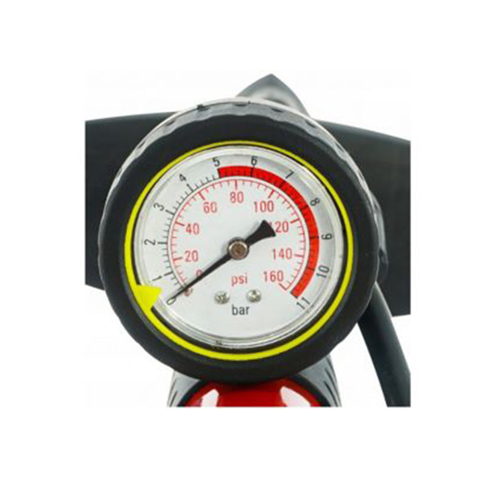 RUČNÁ PUMPA NA DOFUKOVANIE KOLIES S MANOMETROM je veľká, silná a odolná pumpa s univerzálnou svorkou a dvojitou ventilovou hlavicou. Široká základňa a vysoký piest umožňujú rýchle a pohodlné nafúknutie pneumatík, zatiaľ čo adaptér je vhodný pre kolesá bicykla, auta atď.
